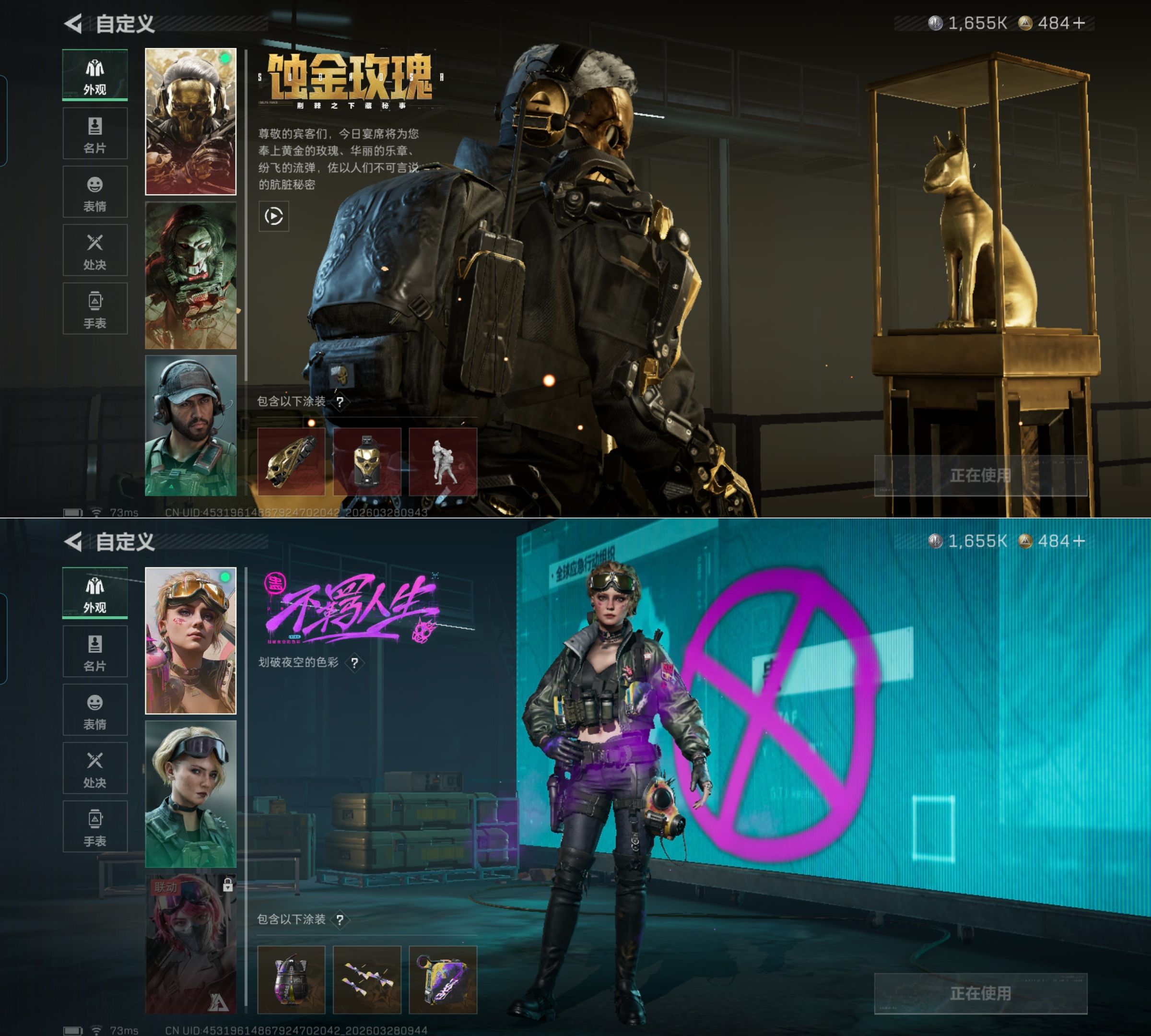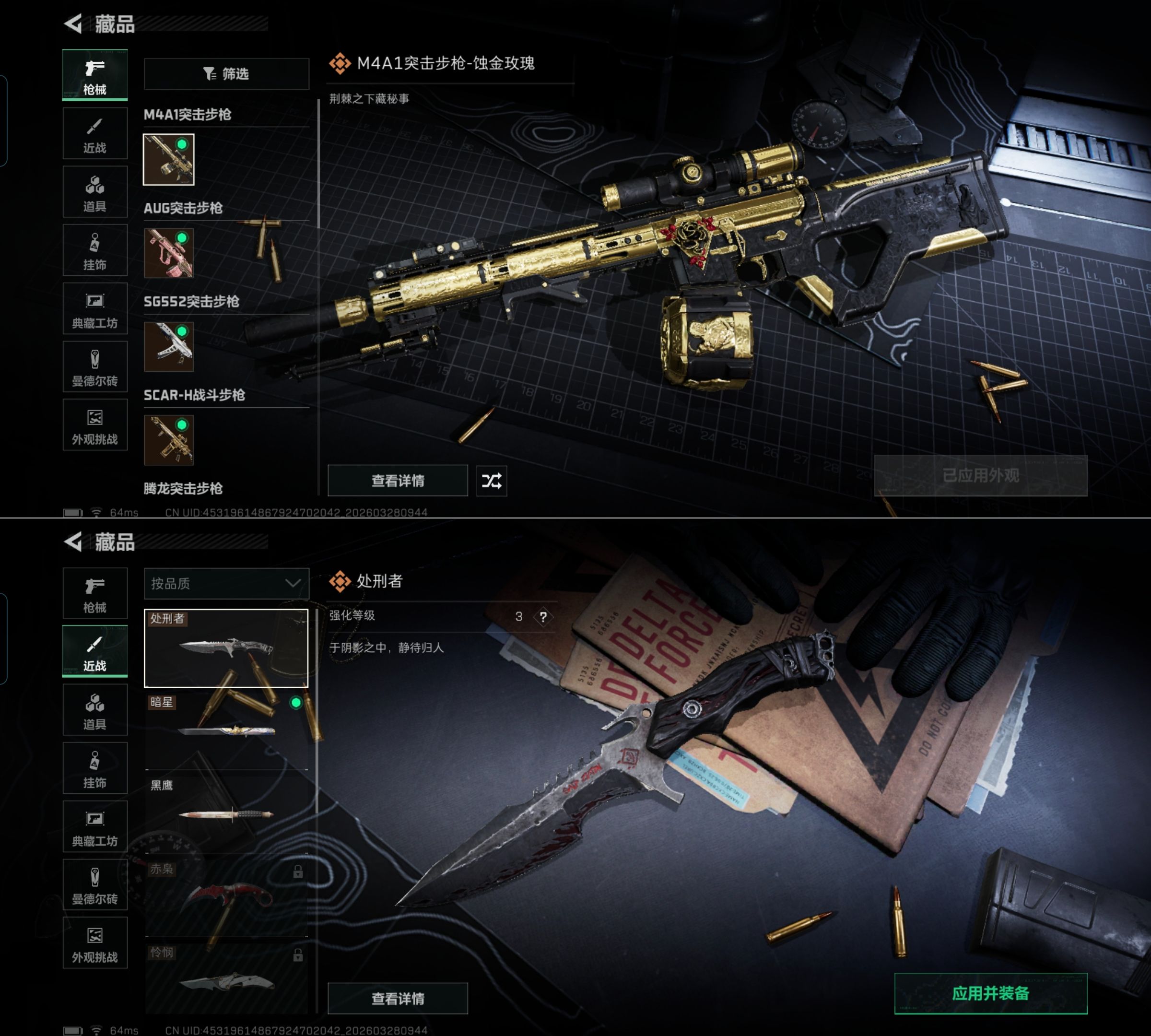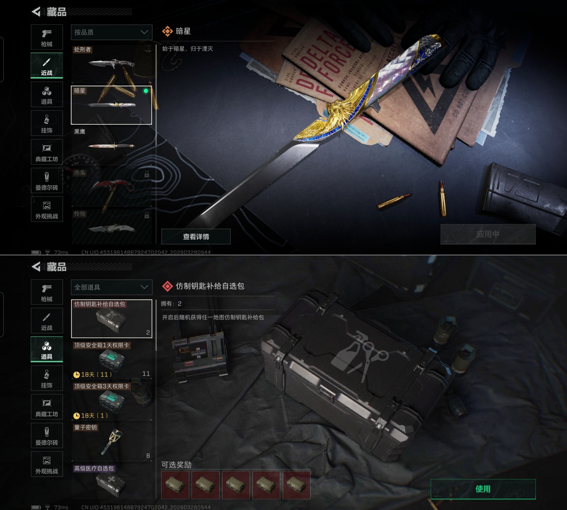 MSJ4079【热门组合 100M资产 5干员 处刑者 暗星 蚀金玫瑰】无二次包【总资产(M)】100.26【哈夫币】1655k【行动等级】60【烽火地带段位】三角洲巅峰【干员皮肤】 红狼-蚀金玫瑰 红狼-电锯惊魂 露娜-金牌射手 蛊-不羁人生 乌鲁鲁-荒原猎手 【近战武器】 黑鹰 处刑者 暗星 【枪皮】M4A1突击步枪-粉色涂装 M4A1突击步枪-高雅黑 M4A1突击步枪-海色 M4A1突击步枪-繁盛 M4A1突击步枪-蚀金玫瑰 AKM突击步枪-肃杀 QBZ95-1突击步枪-高雅黑 QBZ95
