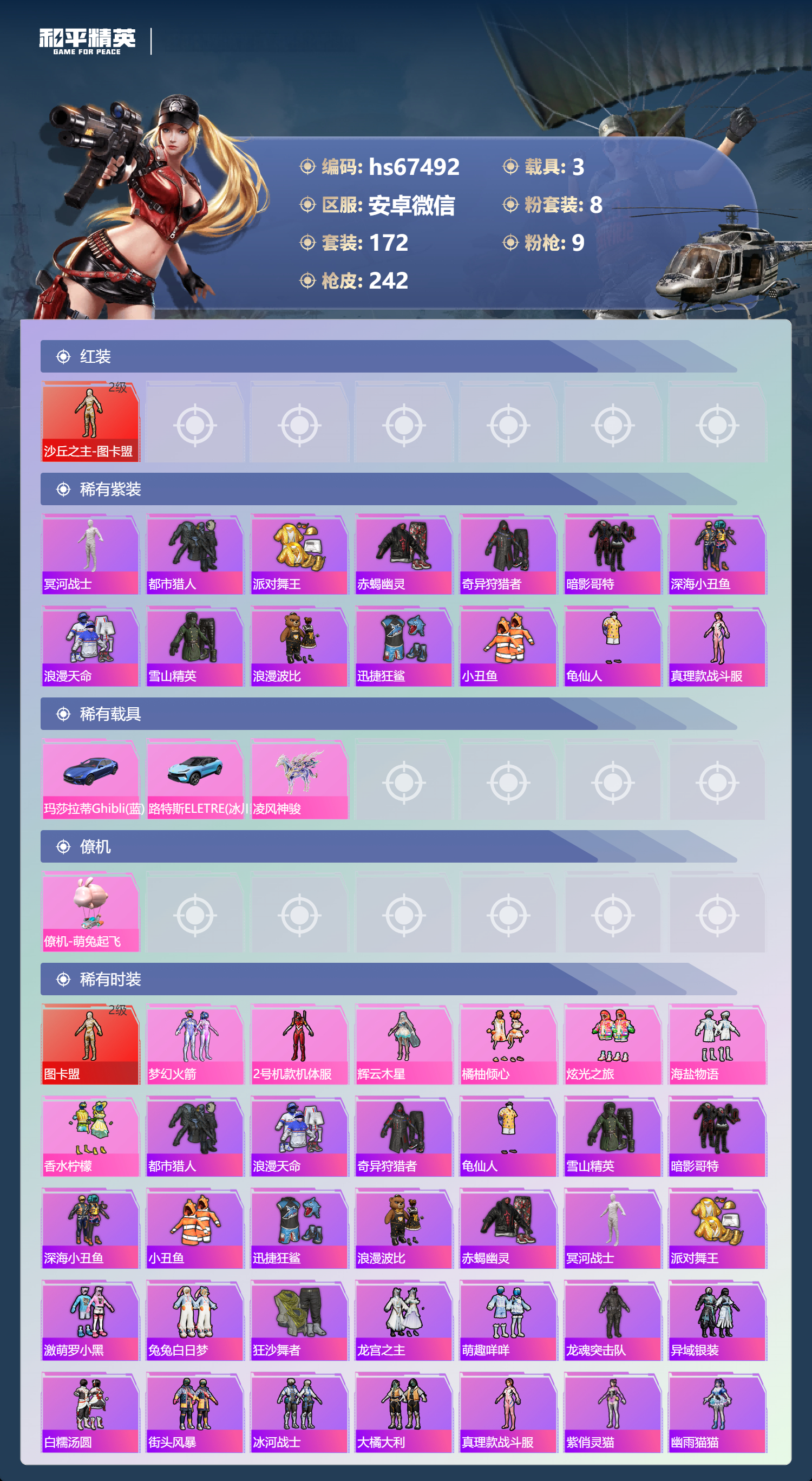 15王牌印记-有战神框-1红装-8粉装-9特效枪