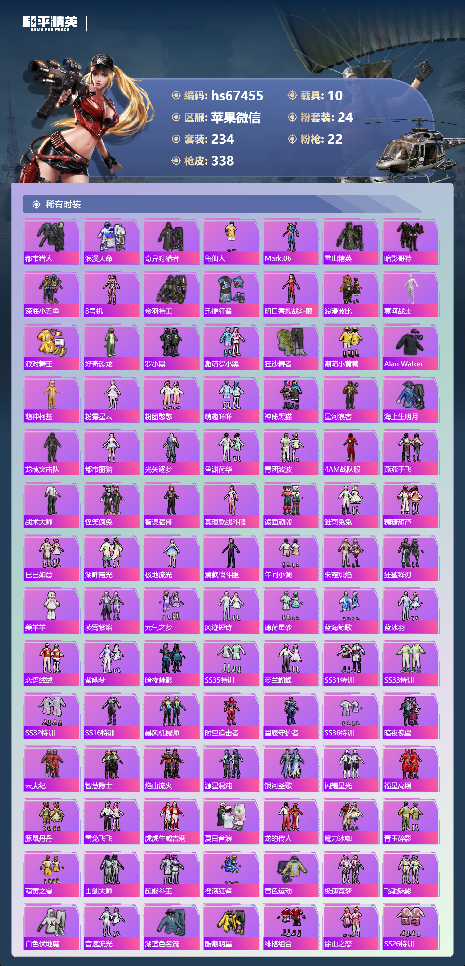 17王牌印记-3红装-24粉装-22特效枪-10载具