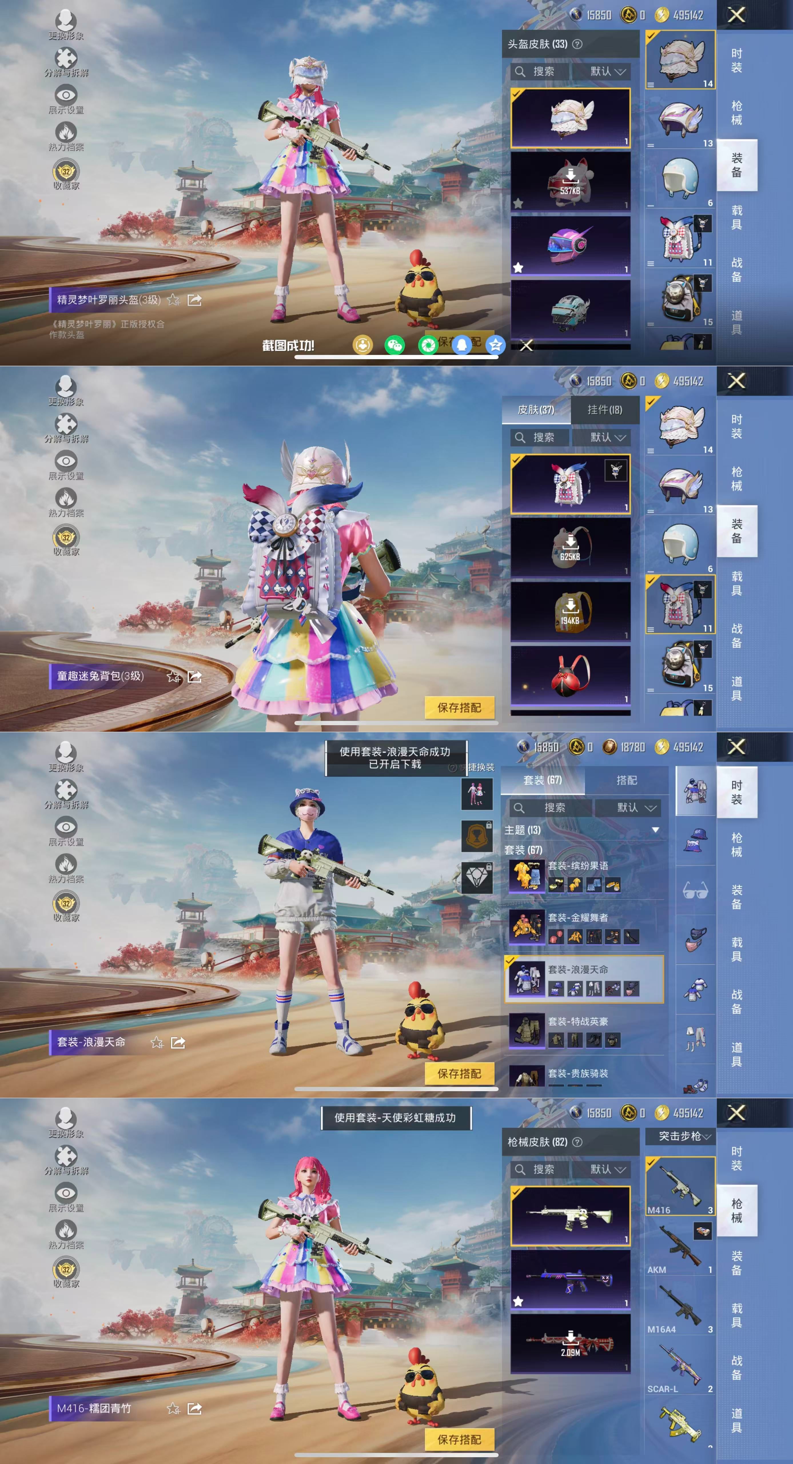 有二次【2粉装-2特效枪星穹咏叹调,天使彩虹糖】 苹果手Q-2粉装-2特效枪-67套装-82枪皮-2王牌印记-英勇黄金Ⅲ-23150热力值【2粉装】星穹咏叹调,天使彩虹糖【2特效枪】DP-28-豹影疾电[1级],Kar98K-巳巳如意[1级]【3稀有】浪漫天命,汤姆逊-奇异狩猎者,M24-奇异狩猎者【1飞行器】光之冒险尾迹【1头盔】梦幻火箭头盔【142其它衣服和枪皮】牛气满满,龙舌兰冰茶,幻世战舞