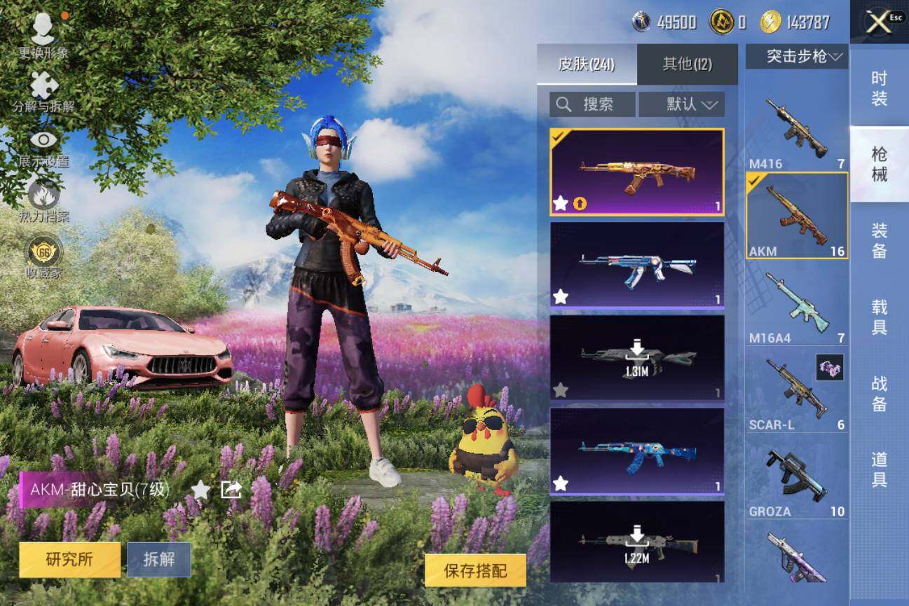 苹果【男神号 10王牌印记 粉装-梦幻火箭,套装-浪漫天命,套装-都市猎人,套装-金羽特工,套装-SS1特训,套装-暗影哥特,角色-8号机,AKM-甜心宝贝(七级),UMP45-萌骑冒险(五级),AKS-74U-千仞雪(七级),玛莎拉蒂Ghibli(粉),海龙奔腾,百万伏特背包(3级) 7粉装-3满特效枪-2载具-1粉色飞行器】 手Q--72886热力值-10王牌印记-169套装-241枪皮