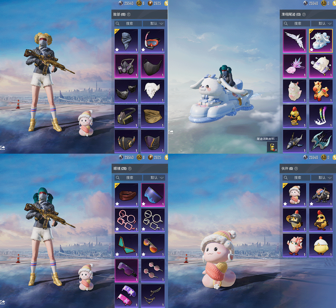 特效枪9:M416-五爪金龙/7级,,P90-能量风暴/7级,,SCAR-L-梦幻火箭/7级,AKM-梦之光华/7级,,DP-28-豹影疾电/5级,,AUG-暖羊咩咩/5级,,UMP45-萌骑冒险/2级,,Mk14-福马献瑞/5级,,Kar98K-巳巳如意/5级,,
