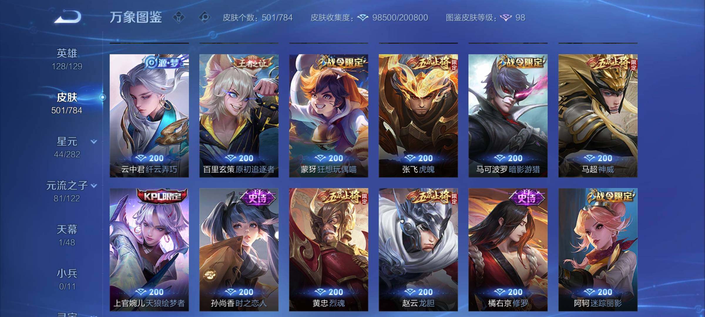 81/可换绑【捡漏V10精品号·小国标嫦娥1.48万·中路67段·对抗路52段·打野48段·发育路48段·全能大师·弈星金标1.33万·火舞金标1.15万·阿珂金标1.19万·曜金标万战·公孙离金标万战·4无双·5典藏·5珍品·多传说限定质量号】43戳戳 4星传说 45按键 15王者印记 满级铭文 可二次KK9177 安卓Q-V10-501皮肤-5典藏皮肤-4无双-5珍