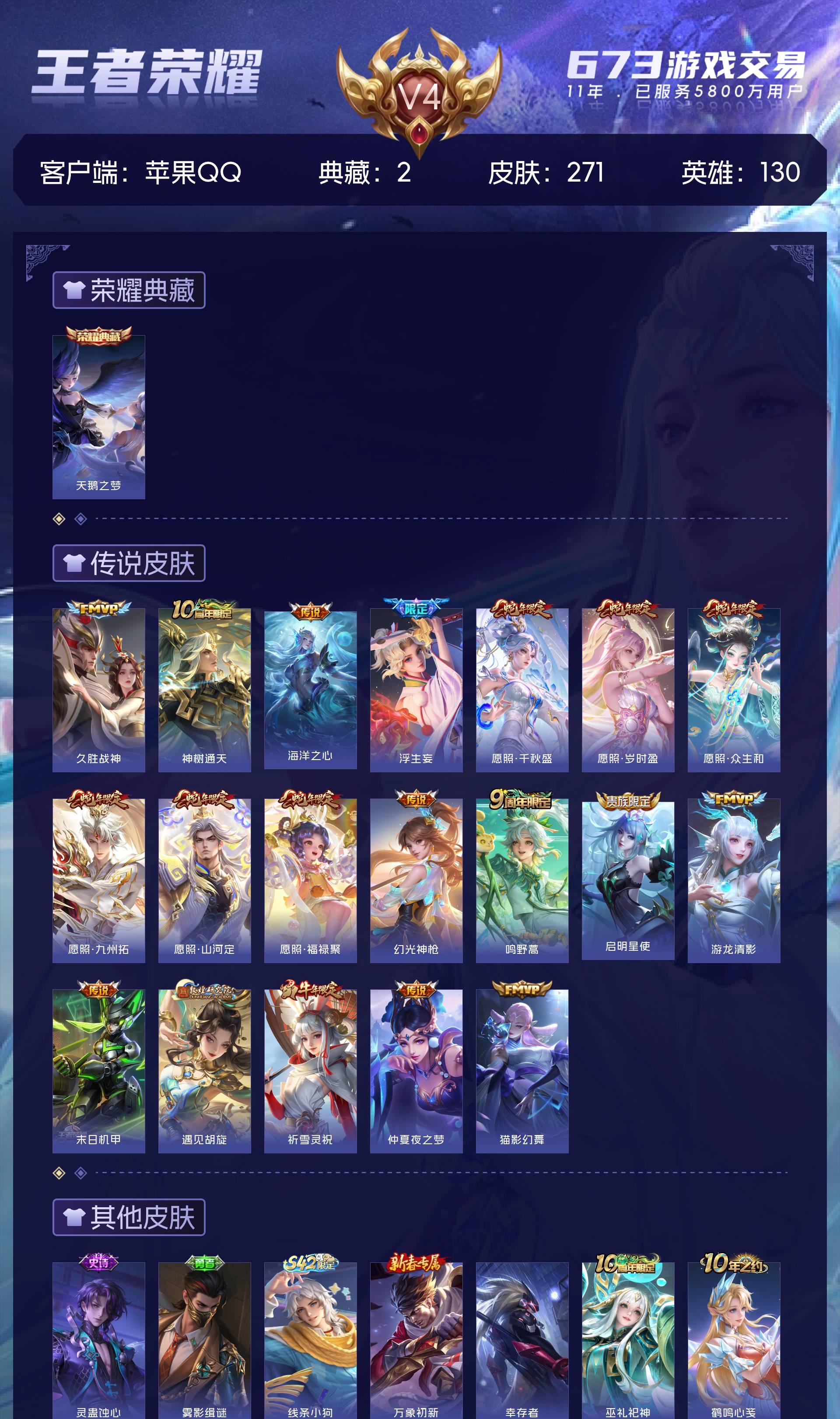 V4 皮肤271 英雄130 尊贵铂金 荣耀典藏2 传说19