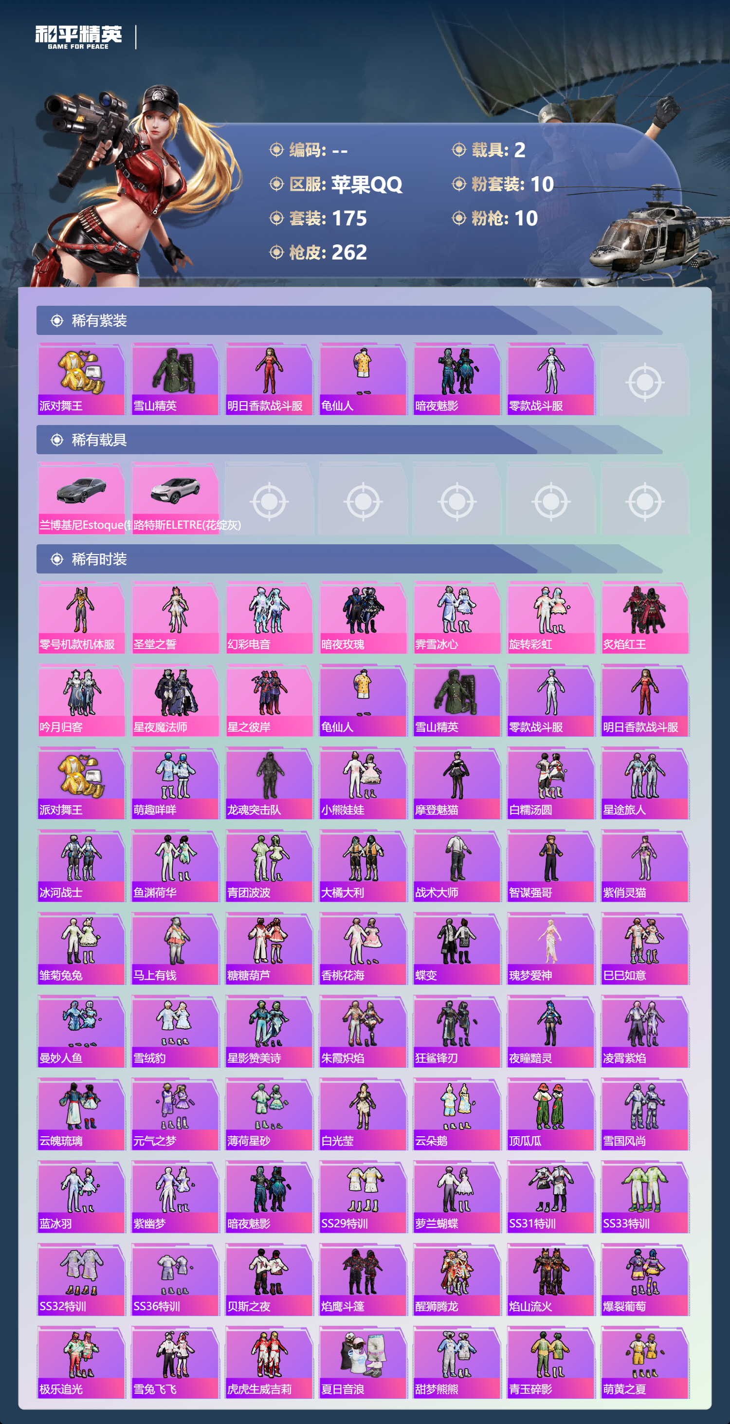 19王牌印记-10粉装-10特效枪-2载具-84640热力值