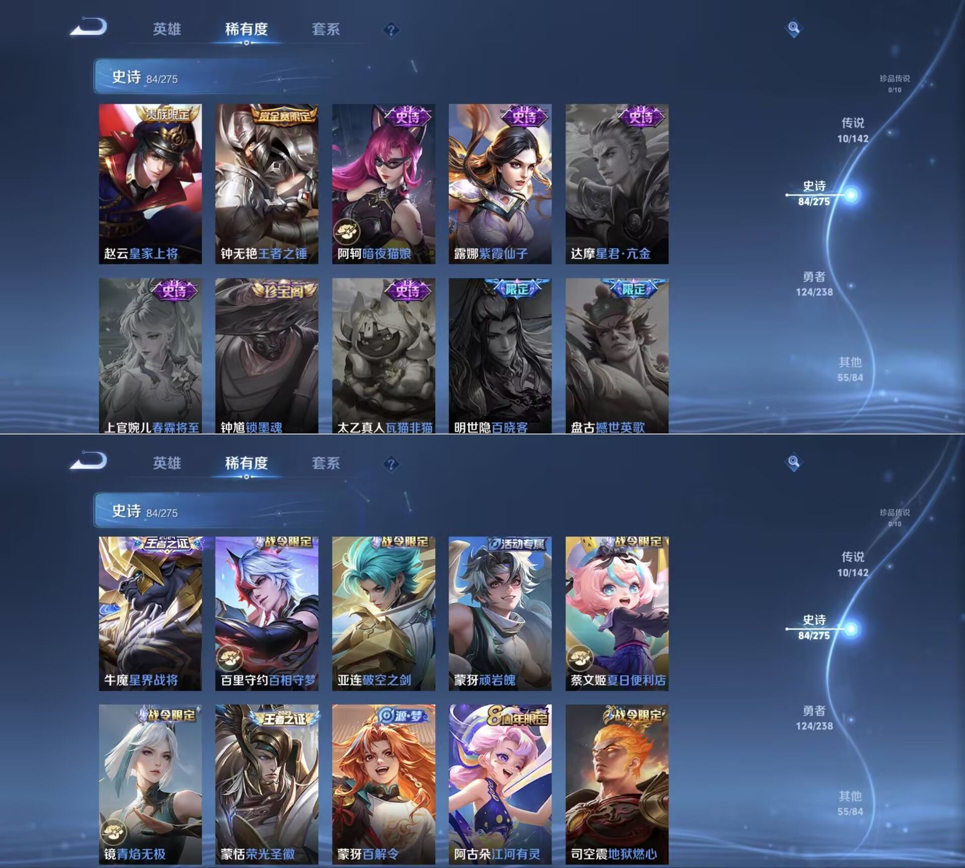 V7 127英雄 274皮肤 1典藏 10传说 4星传说(幽冥火 幽冥之眼 星际治安官 时之思念)