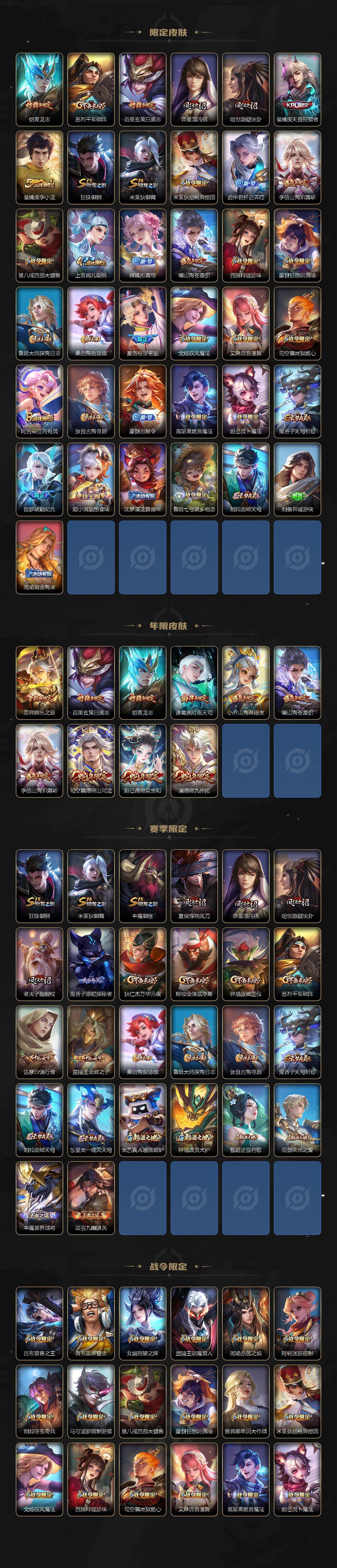 【英雄全皮】:孙权全皮,敖隐全皮,夏洛特全皮,司空震全皮,空空儿全皮