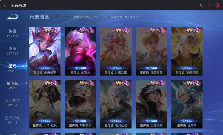 李白+猴子典藏!白虎志!皮肤数量257印记总数9V8最强王者