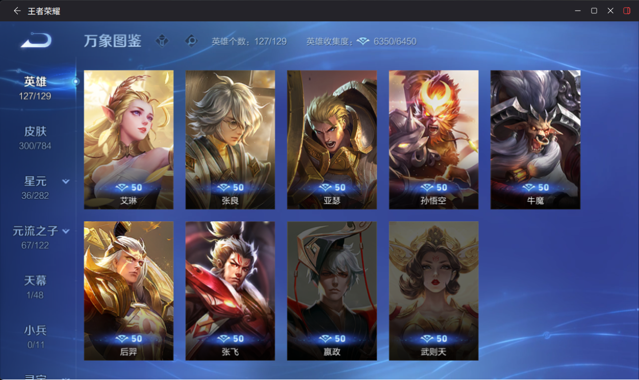 韩信典藏!马年马超!皮肤数量300印记总数15V7绝世王者暂