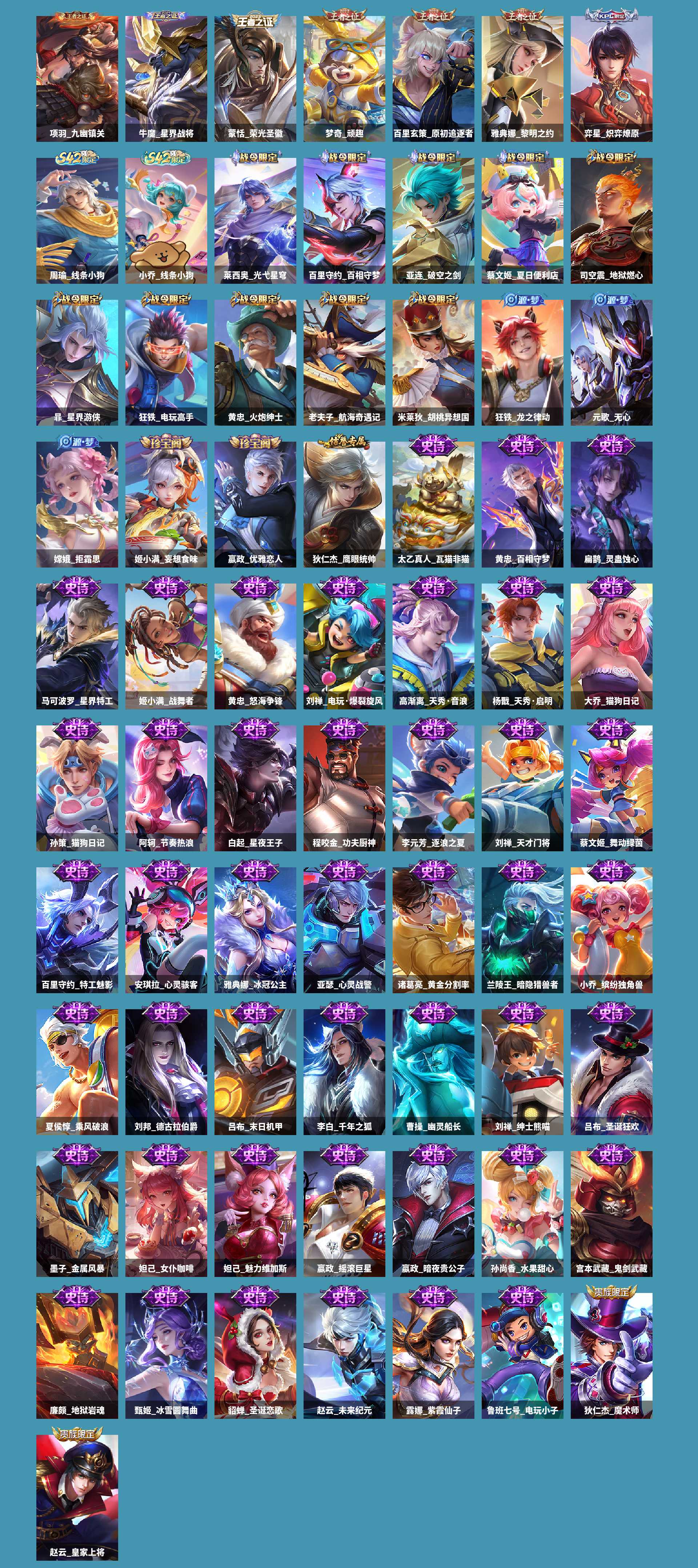 金标夫子!金标庄周!金标咬!基德!李白典藏!皮肤数量315印