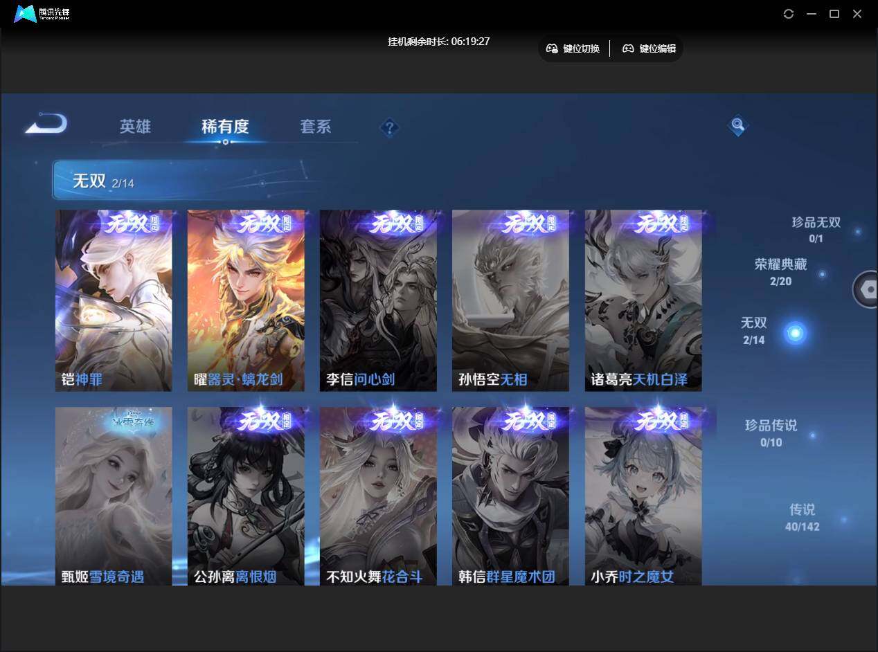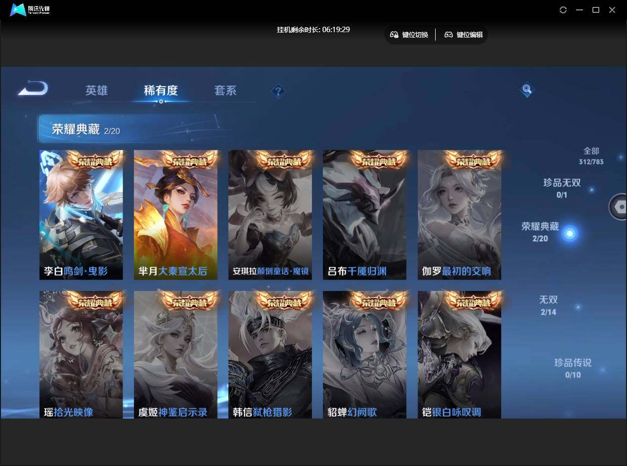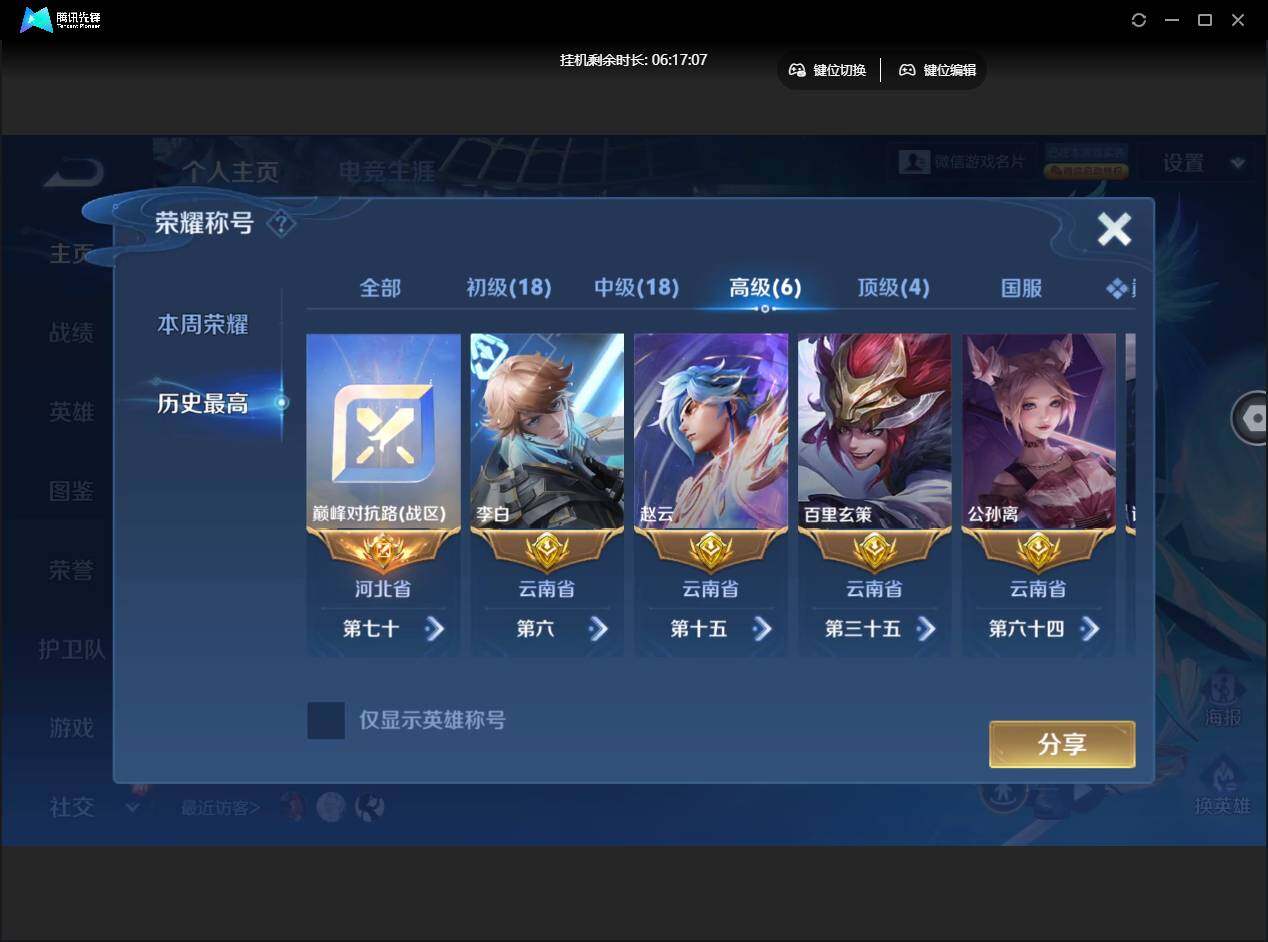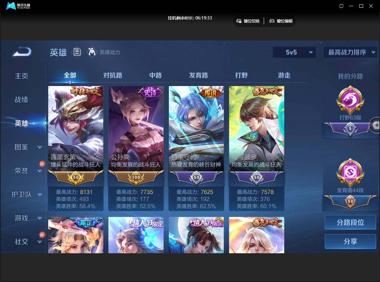 2749/【W6087】【限制可以解-打野63段-(4国标:云樱-曜-李元芳-大司马)-6省标-6k星币】 【爆款臻稀皮肤:鸣剑曳影-大秦宣太后-器灵螭龙剑-神罪-白虎志-凤求凰-愿照山河定-愿照众生和-山海炽霜斩-时雨天司-武圣-补天-鹤归松栖-启明星使-齐天大圣-鹤羽星尊】不可二次-贵9-127英雄-312皮肤-2典藏-2无双-3星元-40传说-
