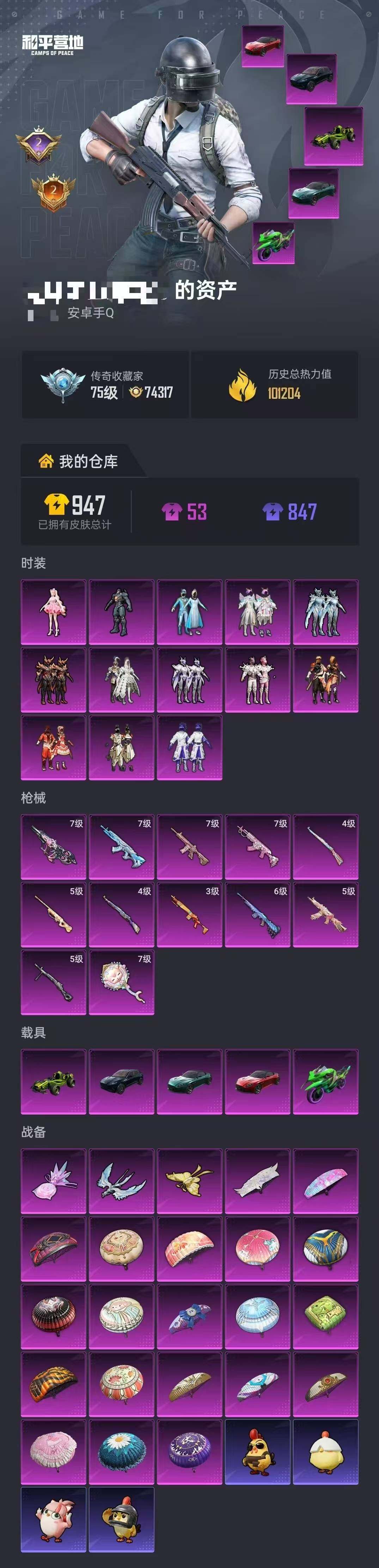 【钱包无法注销,不影响账号安全和游戏正常】时装数: 607 载具数: 5 枪械数: 240 战备数: 172 热门装扮: 奇异狩猎者,深海小丑鱼,梦魇先生,鹰眼刺客,锦绣火鲤,冰霜白皇,新星烈龙,扶摇飞仙,雪国幻梦,山涧鹿灵,烈焰拳霸,海渊国主,紫电风暴,赤焰黑爵,冷魅冰骑,复仇流浪者,浪客战士,银碳小老虎,暗夜魅影,樱桃泡泡 载具: 双人摩托-双刃魅影(绿),阿斯顿·马丁DBS(红),阿斯顿·