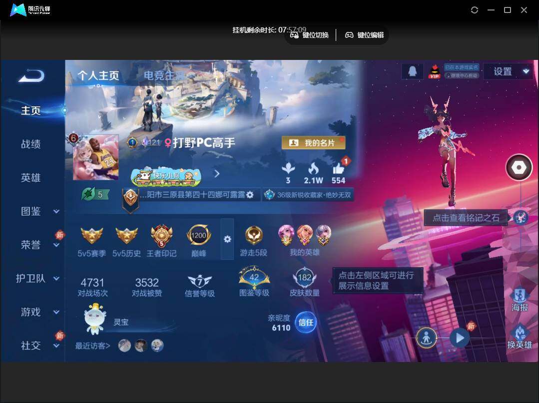 不可二次-贵6-128英雄-182皮肤-2无双-1珍品-2星元-6传说-9按键-贵族积分1.8w