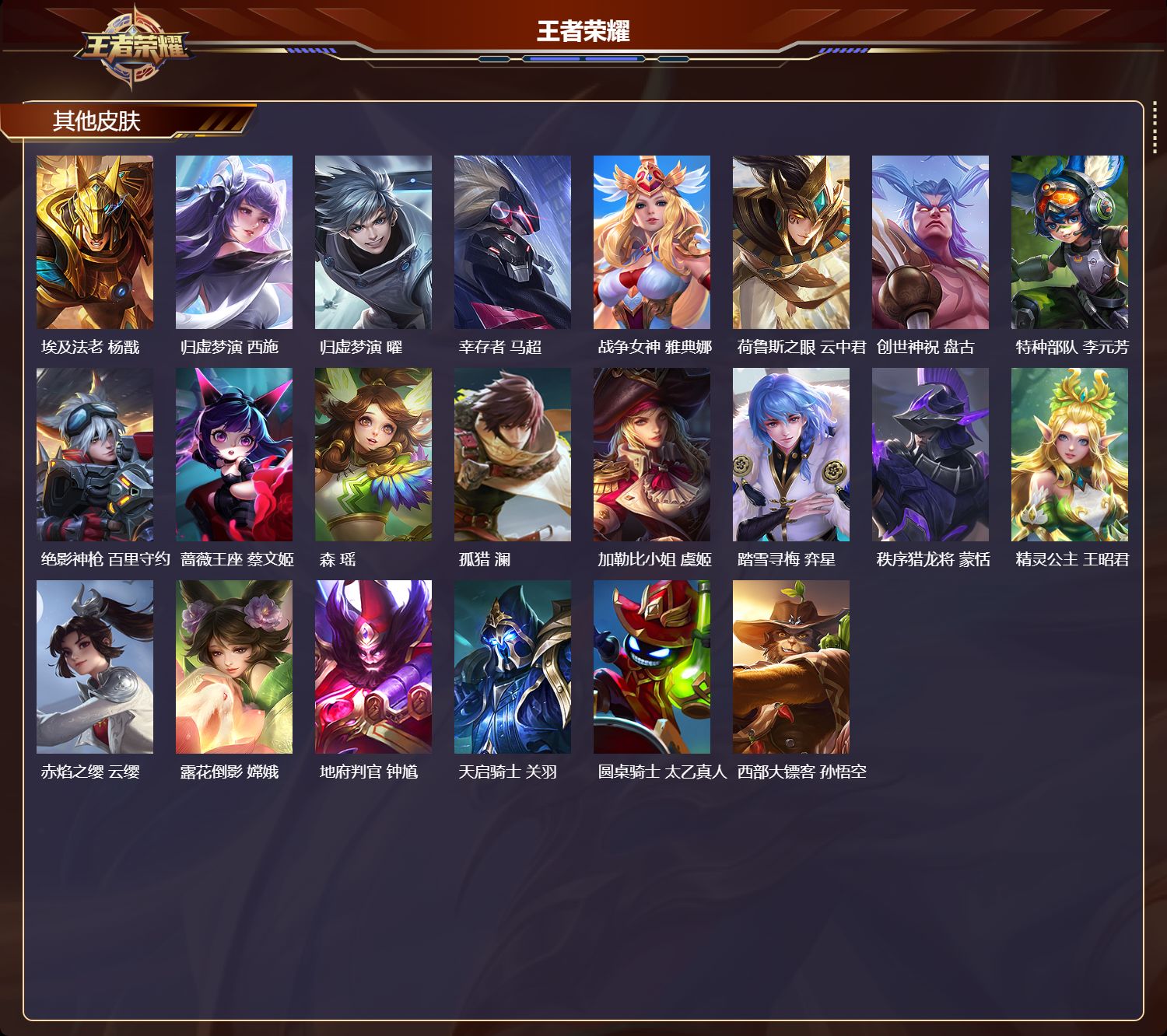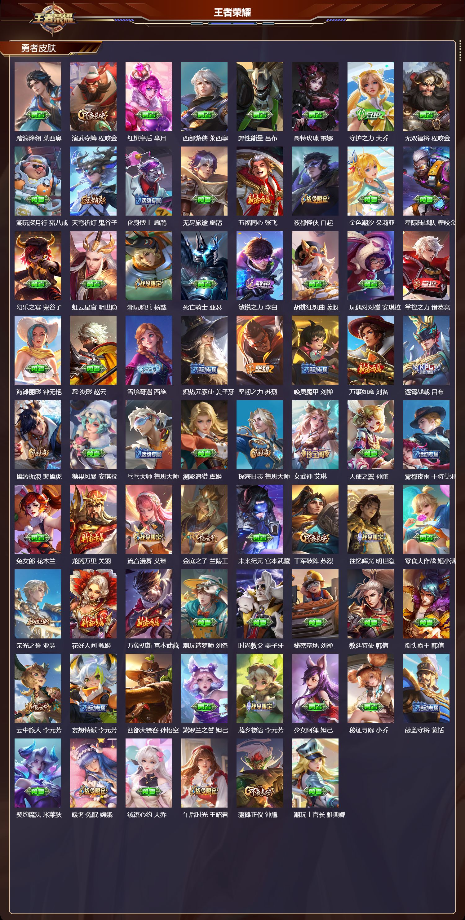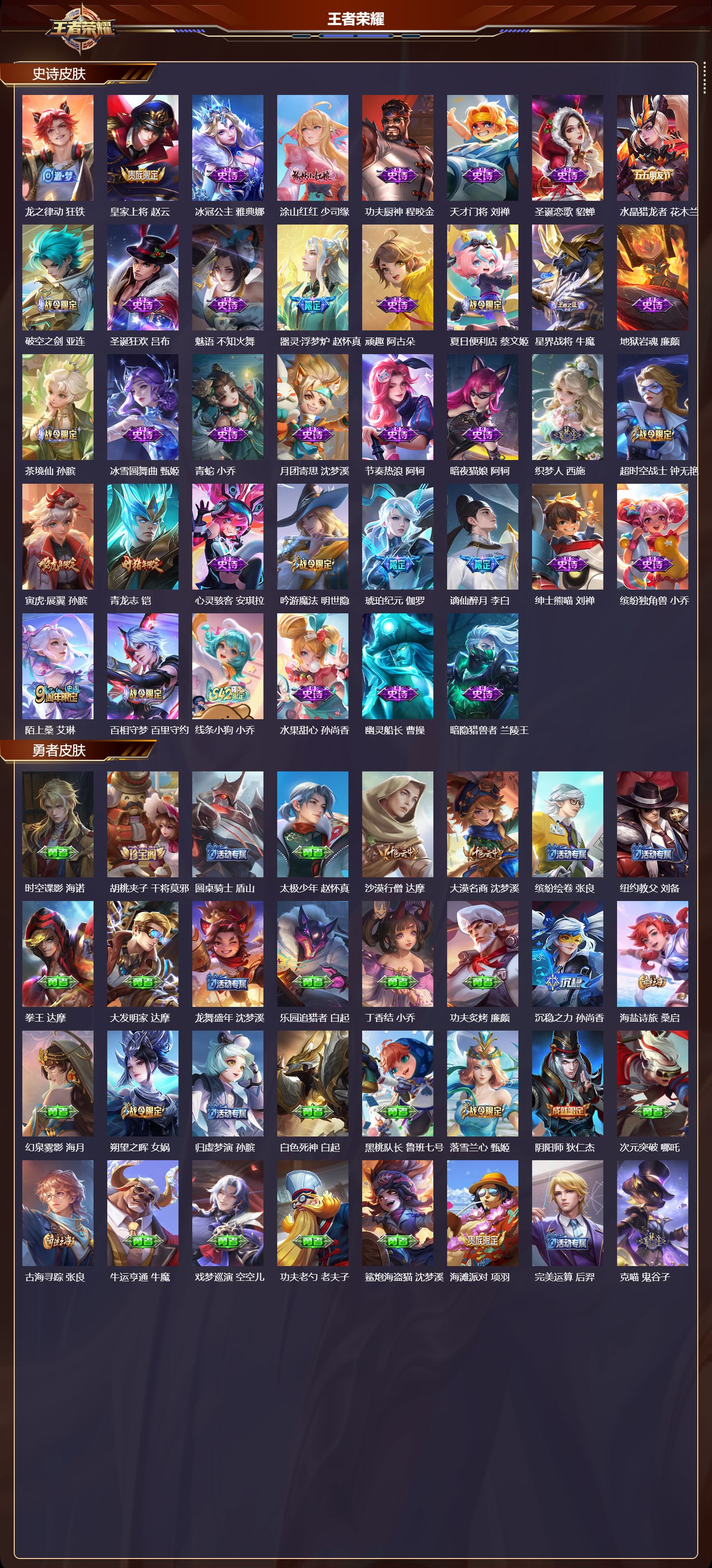 绝世王者/299皮肤/127英雄/3典藏/0珍品无双/2无双/0珍品传说/13传说/90史诗/8稀有英雄