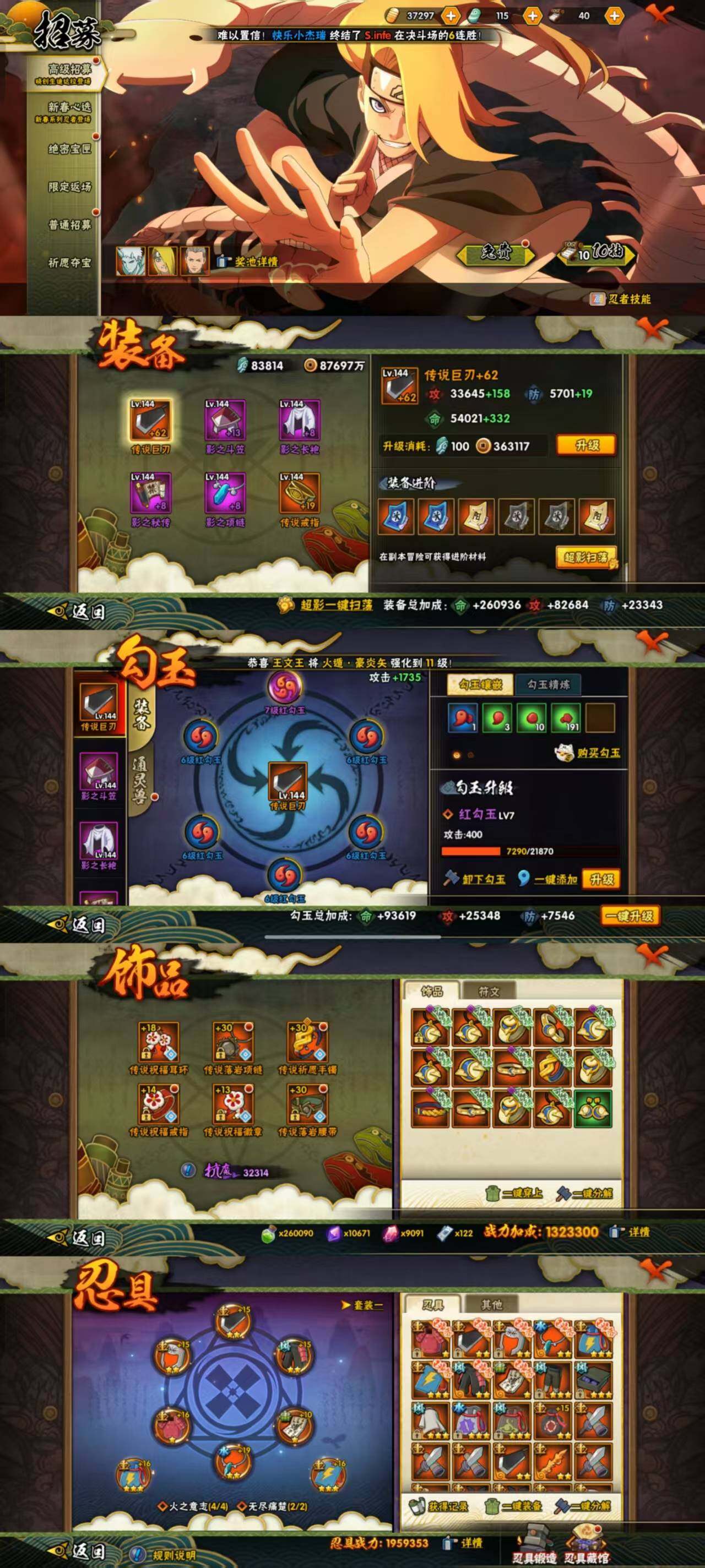 gd35,1059万战,12s忍32a忍,十尾带土忍战带土白面具须佐卡卡西须佐能乎鼬天道佩恩秽土日斩传说自来也十周年鸣佐舞杰自来也,漩涡鸣人·宇智波佐助(3星),旗木卡卡西「须佐能乎」(3星),自来也「舞之豪杰」(3星),自来也「传说中的三忍」(3星),纲手(3星),猿飞日斩(3星),猿飞日斩「秽土转生」(3星),宇智波鼬「须佐能乎」(3星),宇智波斑 「白面具」(3星宇智波斑「白面具」),宇智