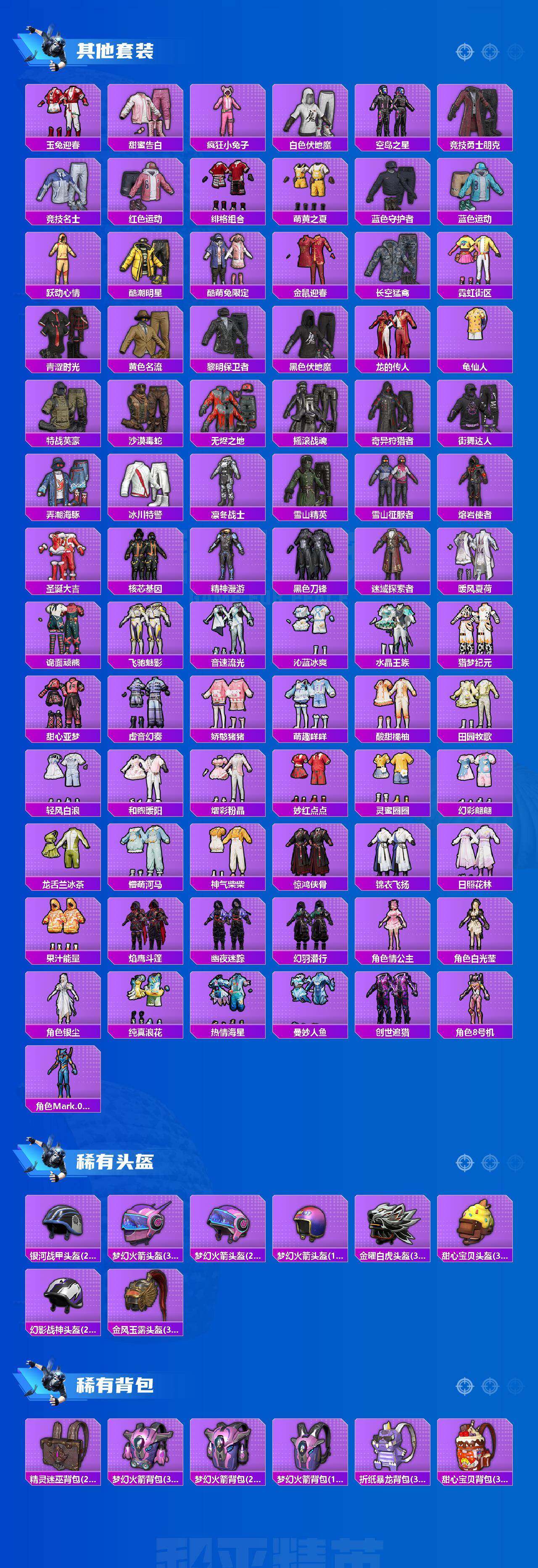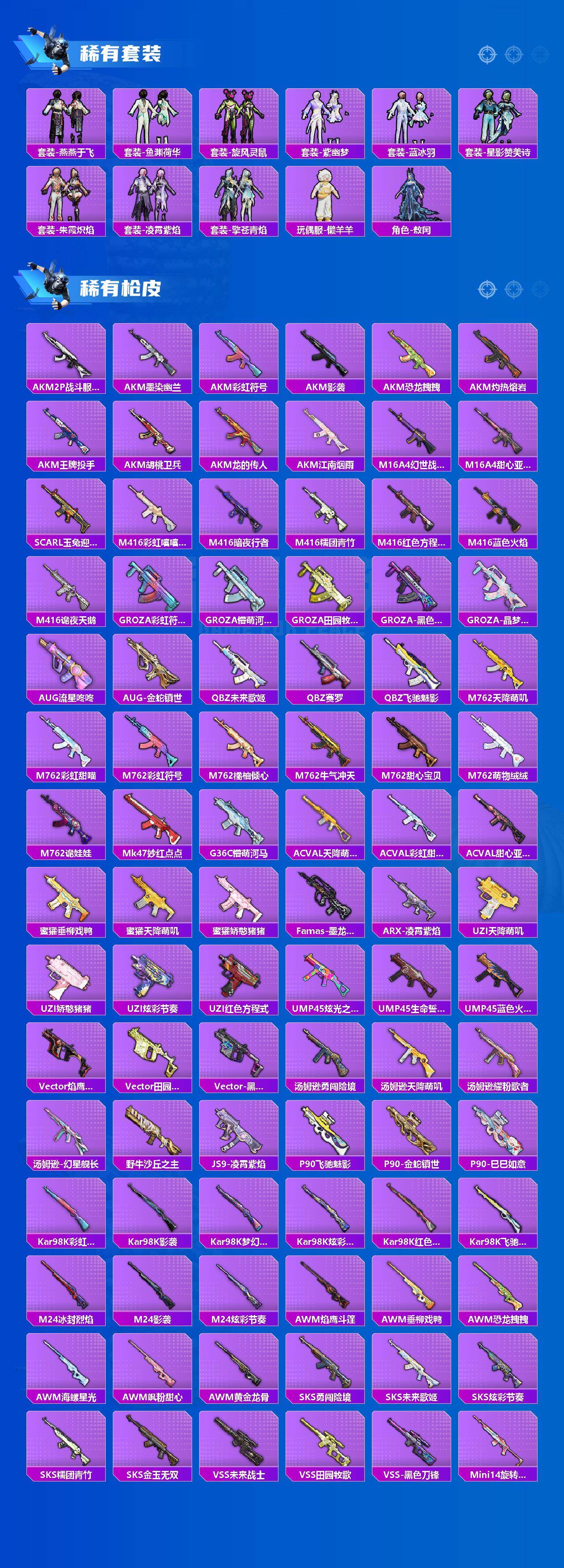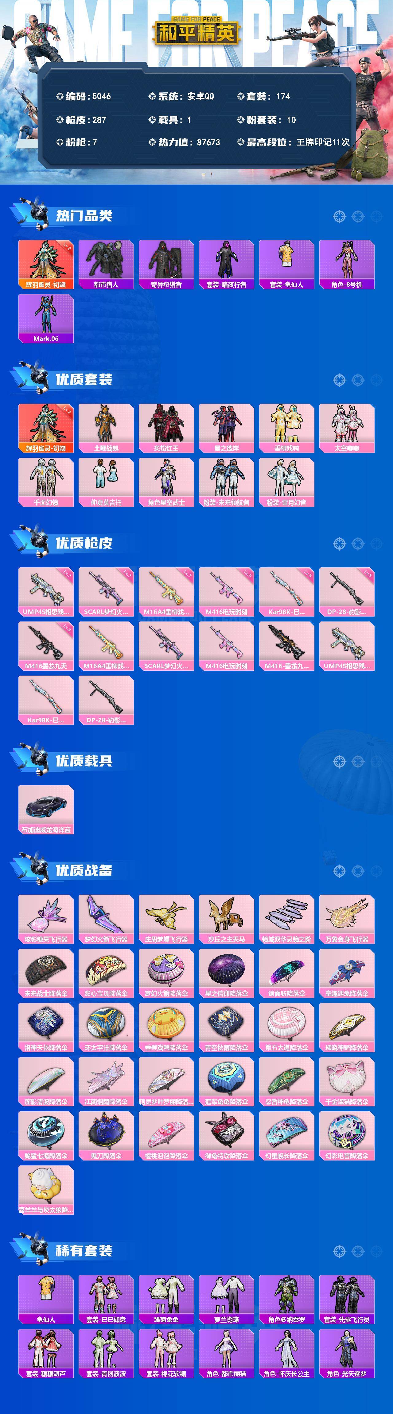 粉装10/粉枪7/载具1/珍稀飞行器,72237,72275,87700,72317,/套装174/枪皮287/热力值87673/历史最高段位:王牌印记11次/Lv:66/七级M16A4-垂柳戏鸭/七级SCAR-L-梦幻火箭/五级M416-电玩时刻/三级M416-墨龙九天/七级UMP45-相思残雪/五级Kar98K-巳巳如意/五级DP-28-豹影疾电/二级辉羽雀灵-初翊