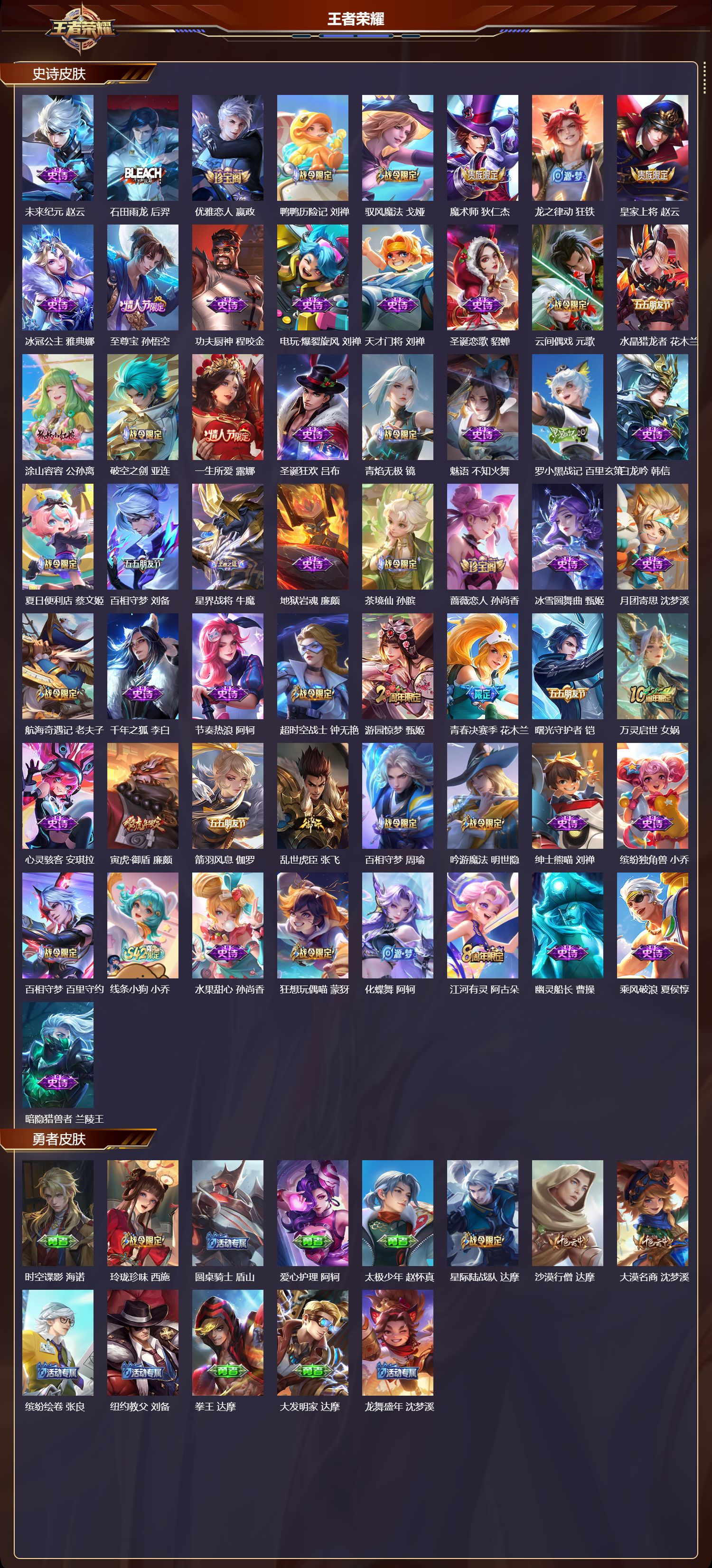 最强王者/350皮肤/127英雄/1典藏/0珍品无双/0无双/0珍品传说/17传说/109史诗/8稀有英雄