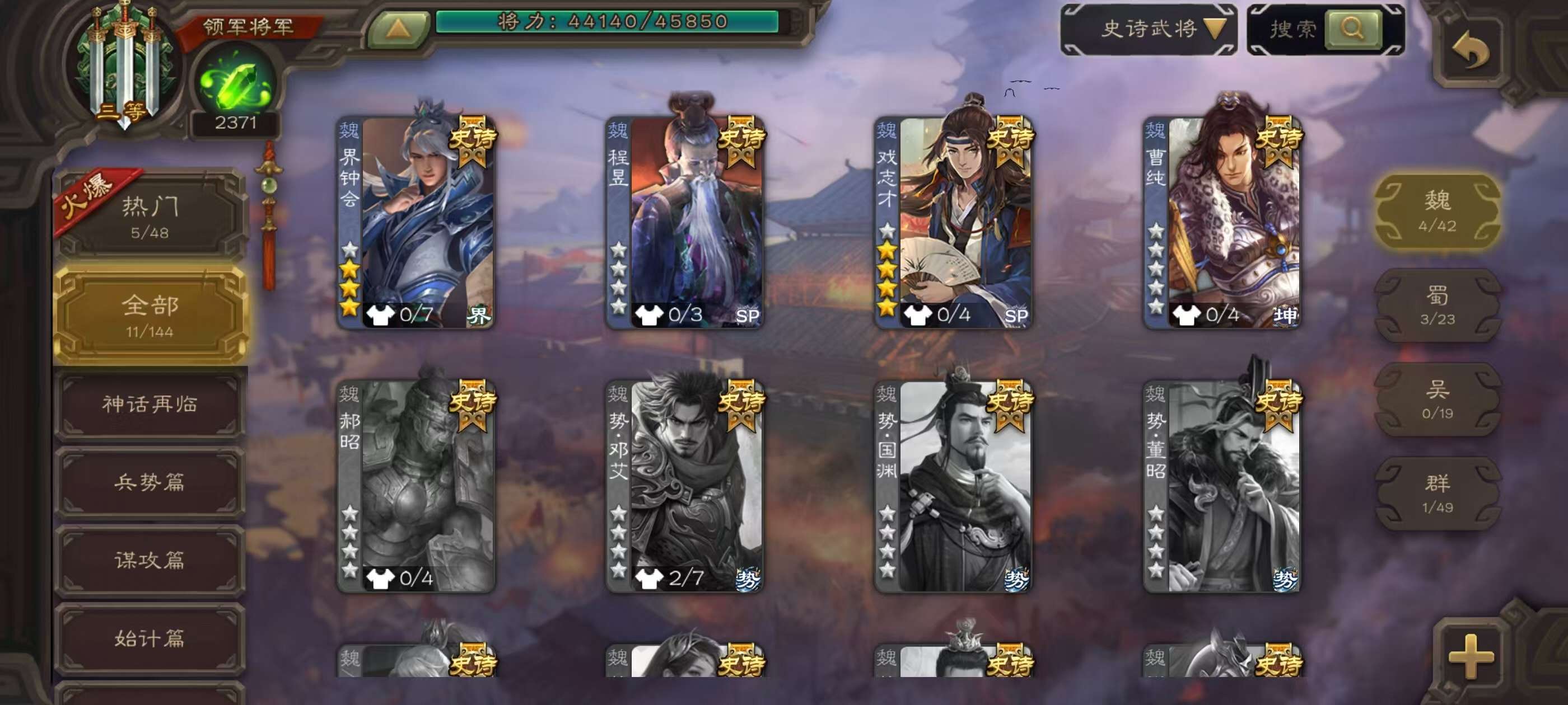 11史诗 4神将 可合第五神 220武将 谋张飞神吕布 神赵云 神刘备 神吕蒙 界钟会等等等A1