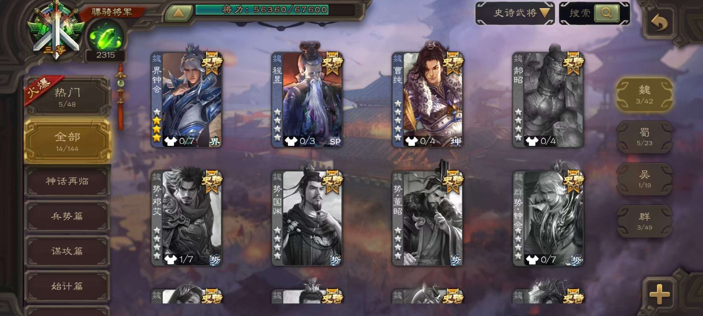 史诗武将数量: