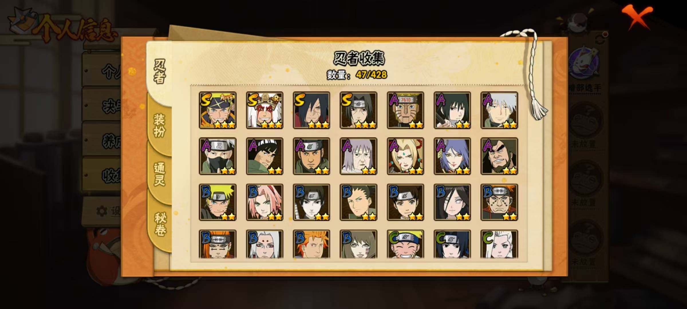 【S级忍者】:宇智波斑「秽土转生·解」(3星),宇智波鼬「须佐能乎」(3星),自来也「舞之豪杰」(3星),漩涡鸣人·宇智波佐助(3星)