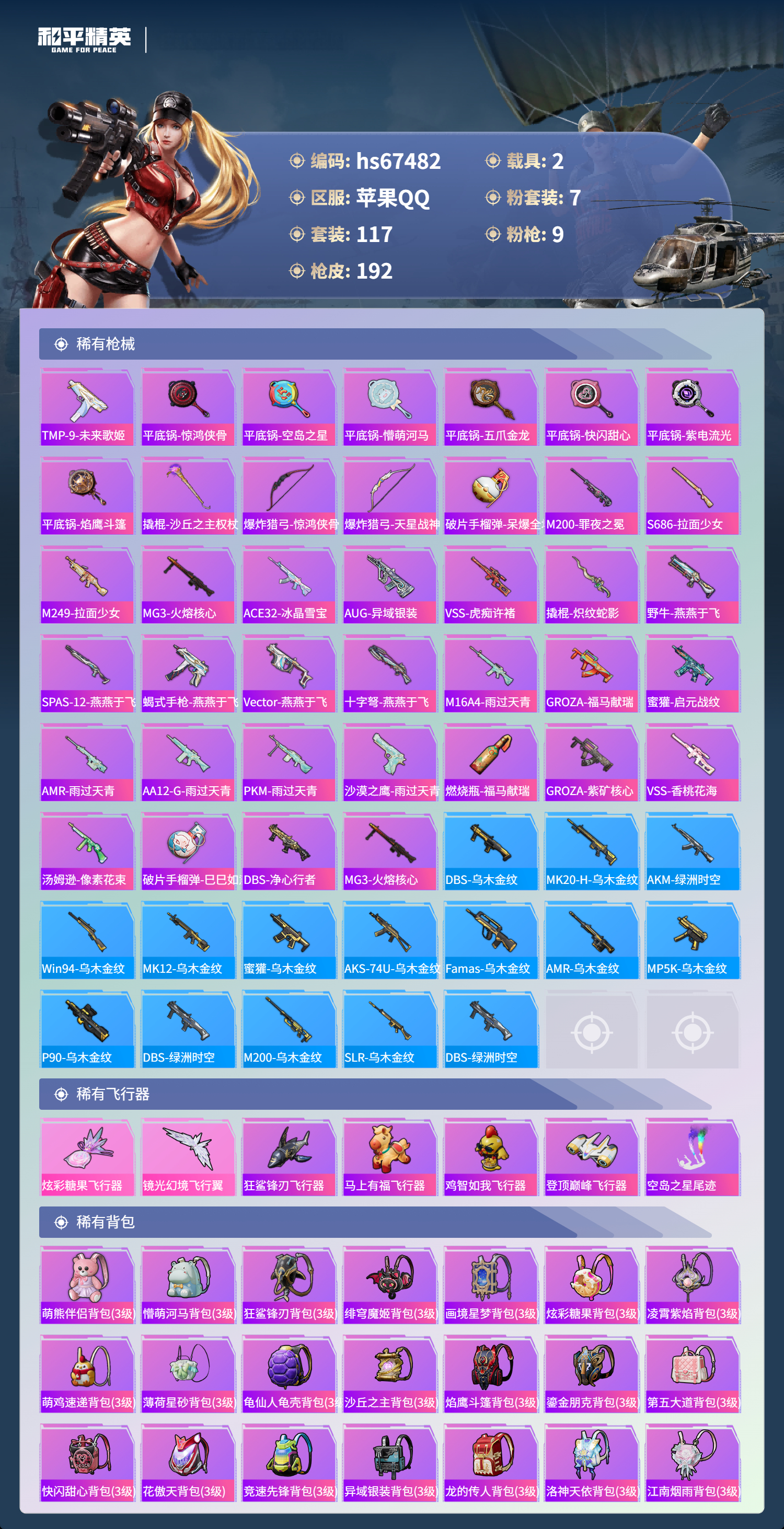 7王牌印记-7粉装-9特效枪-2载具-59797热力值