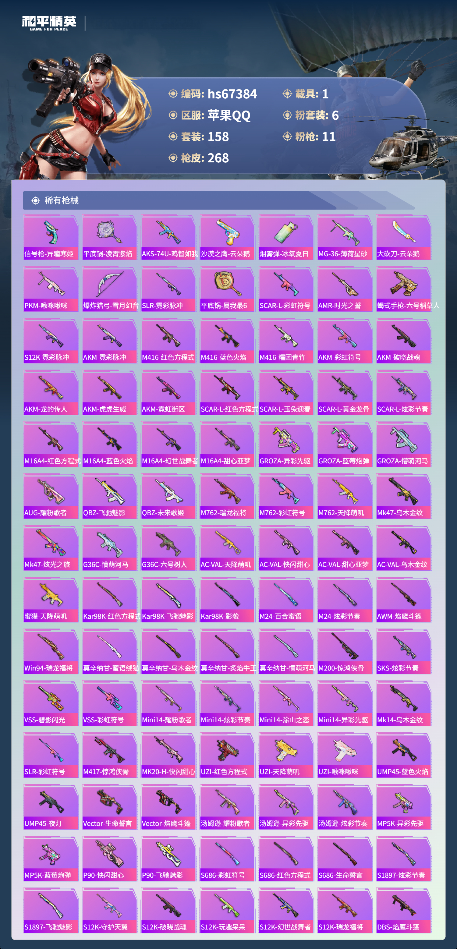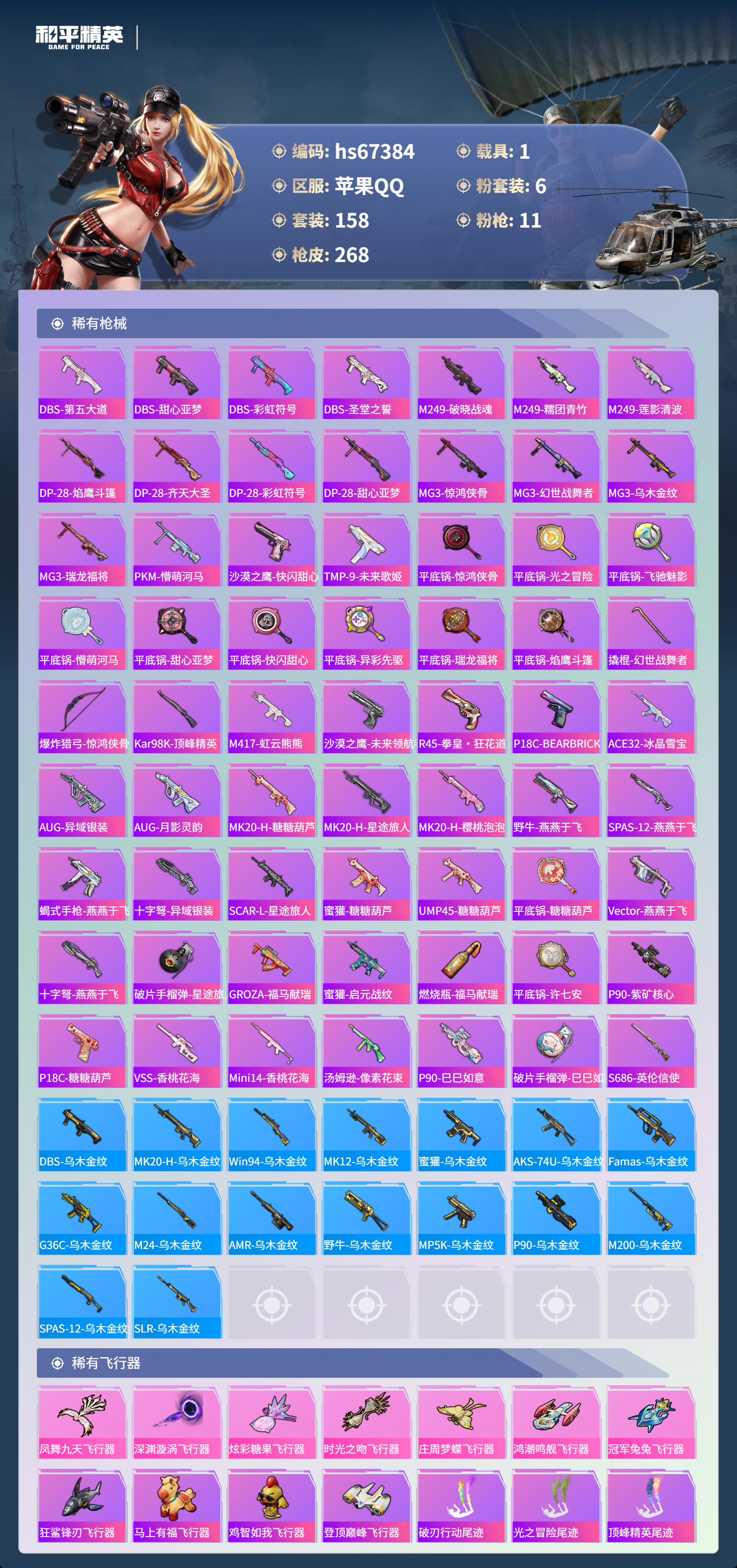 18王牌印记-1红装-6粉装-11特效枪-1载具