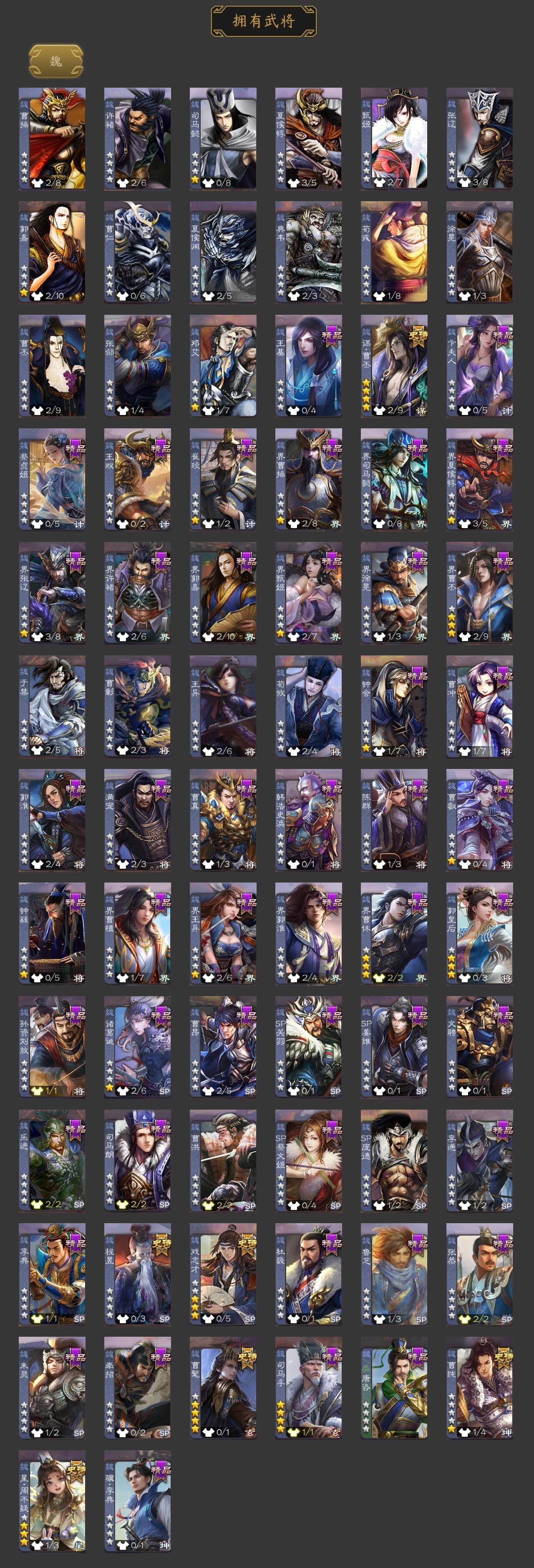 神赵云,神司马懿,神张辽,曹髦,星周不疑,曹纯,戏志才,谋曹丕,程昱,谋赵云,谋马超,周群,谯周,花鬘,张奋,界徐盛,裴秀,左慈,麹义,南华老仙,沮授,界左慈,界李儒,杜预,谋张角