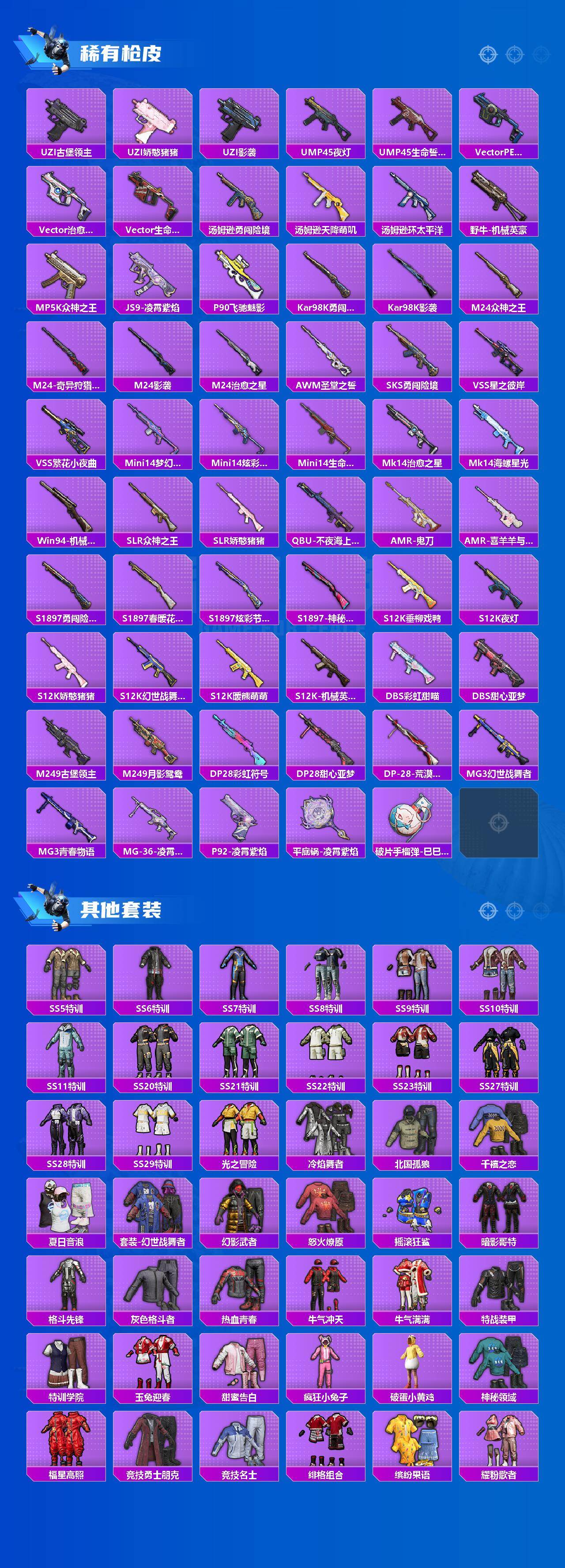 【粉色枪皮等级】:AKM-炫紫旋律(五级),M416-暖熊萌萌(四级),Vector-环太平洋(三级