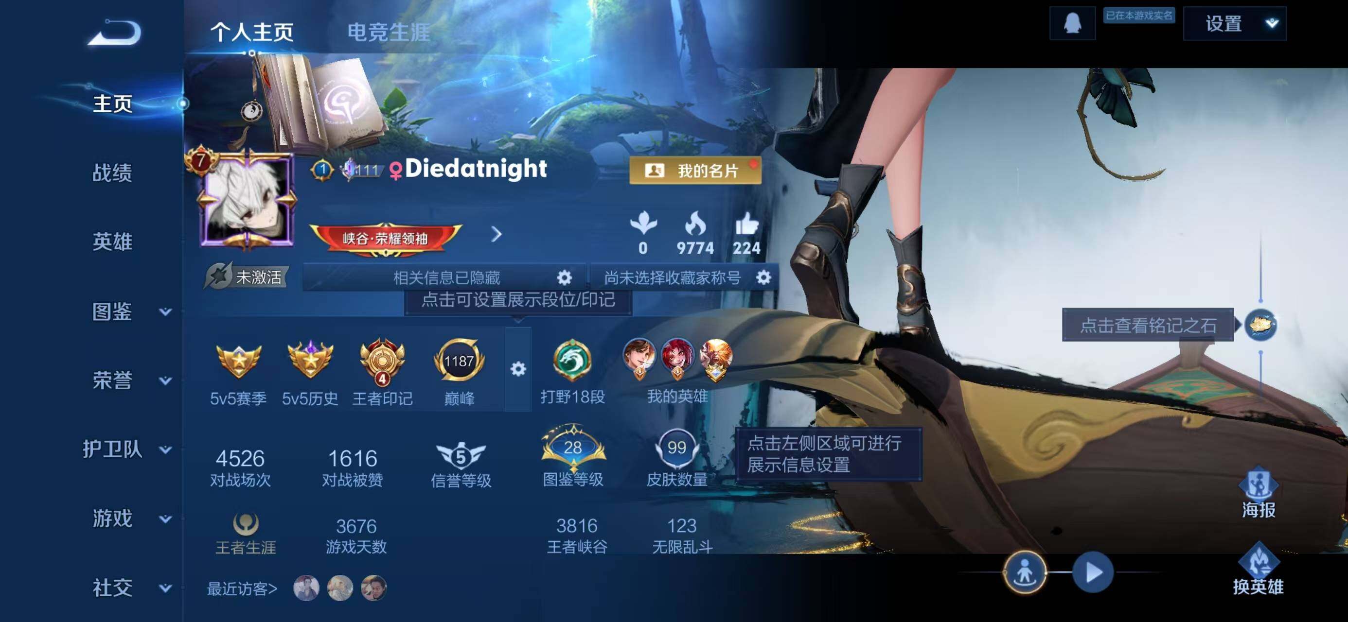 安卓Q-V7-最强王者段位-113英雄-99皮肤-3典藏皮肤-1无双-1珍品传说-3传说-21史诗