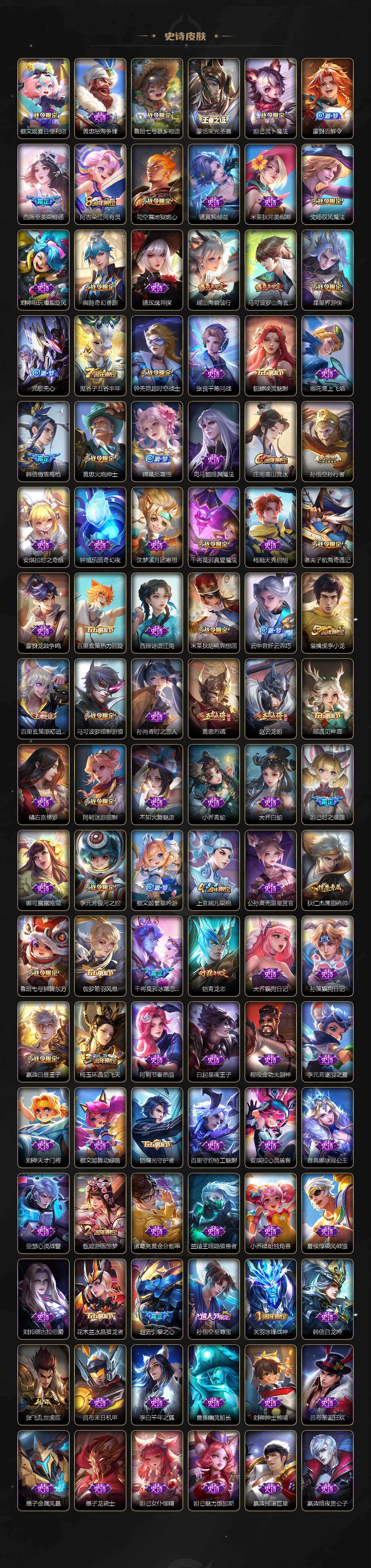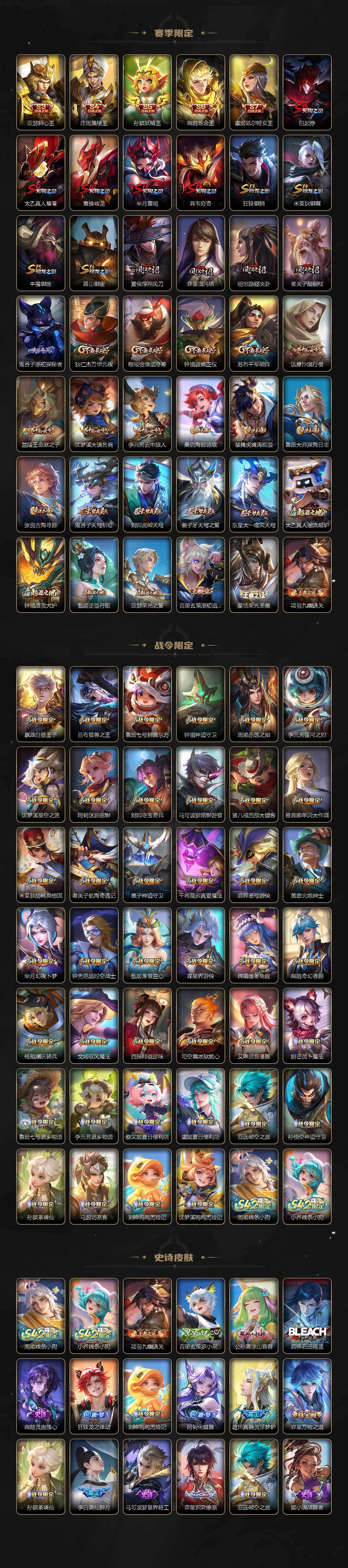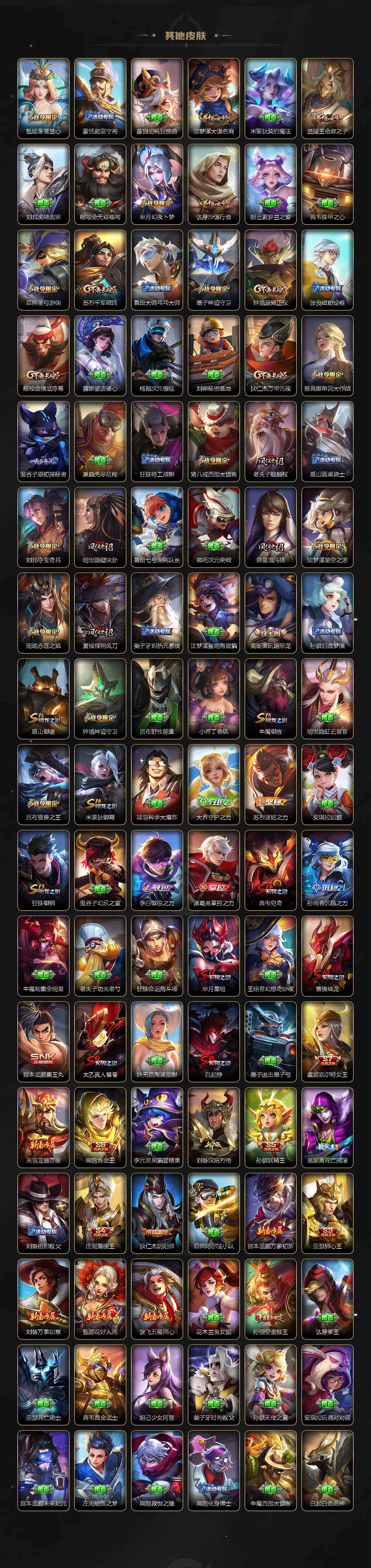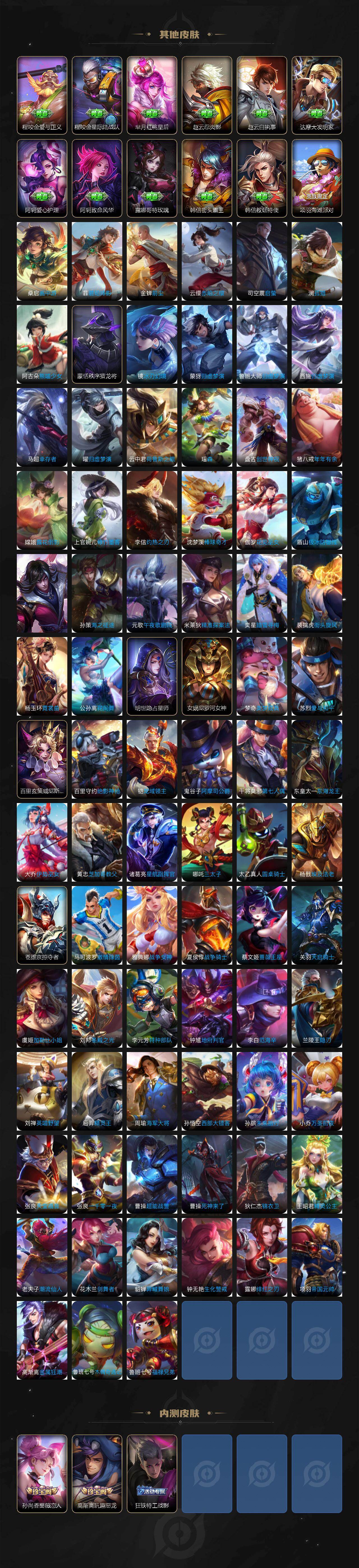 V9/457皮肤3典藏皮肤2无双4珍品传说33传说【英雄全皮】:扁鹊全皮,刘