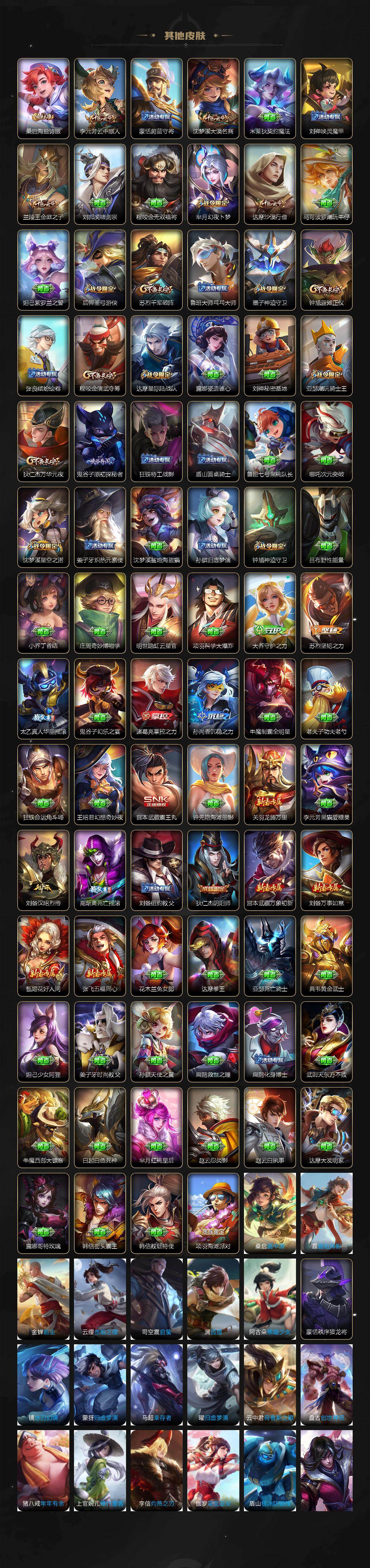 贵族等级8/荣耀典藏数量1/传说皮肤数量18/史诗皮肤数量90/皮肤数量284/英雄数量126/段位最强王者/拾光映像 瑶/器灵·螭龙剑 曜/马超神骥逐星野/愿照·九州拓 澜/幻光神枪 云缨/祥瑞亨通 裴擒虎/鸣野蒿 桑启/冥王哈迪斯 铠/霜月吟 露娜/记忆之芯 公孙离/无双飞将 马超/启明星使 虞姬/零号·赤焰 孙悟空/武圣 关羽/一念神魔 李信/黄金狮子座 达摩/白虎志 百里玄策/黄金射手