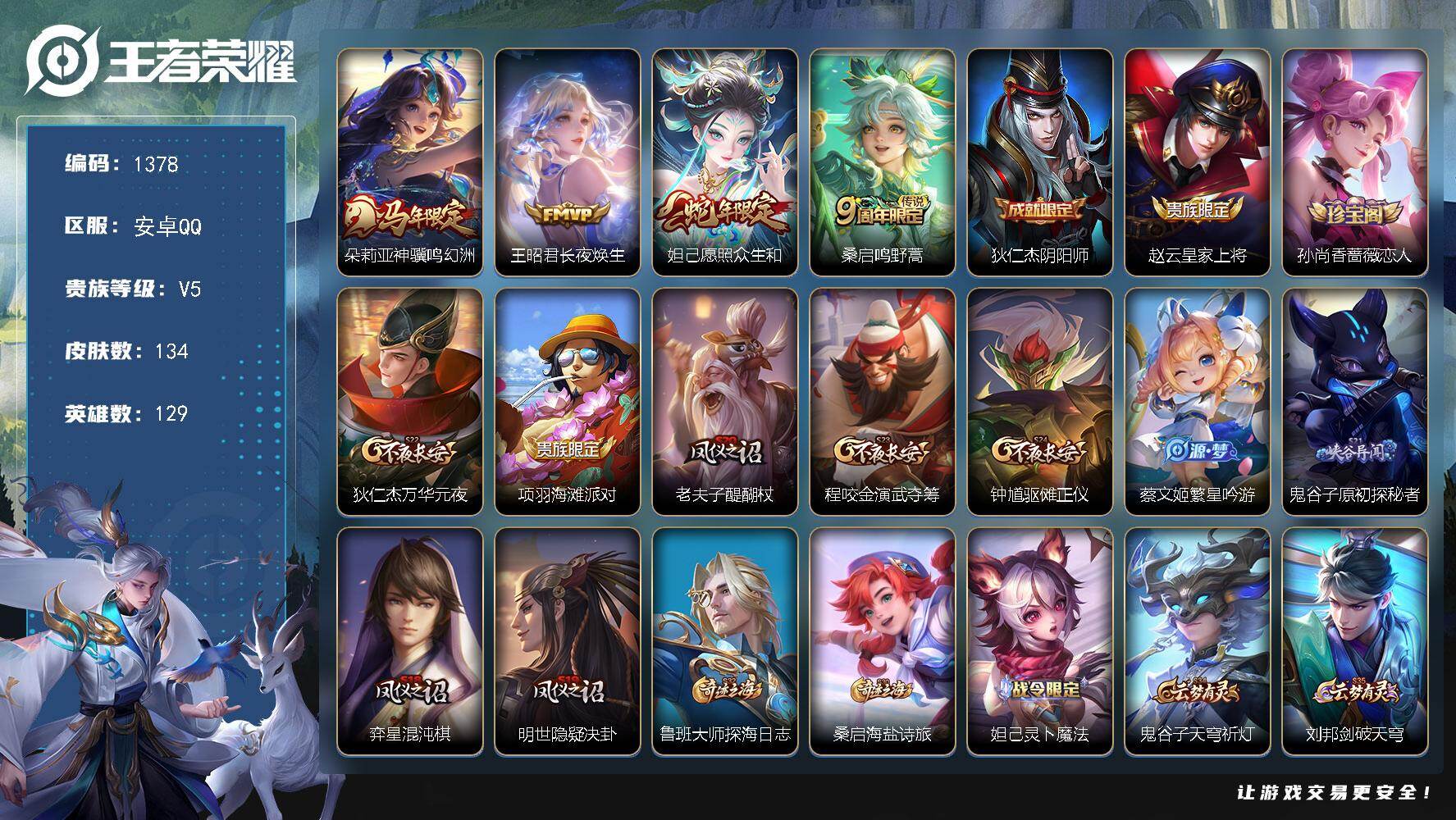 女号 安卓Q-V5-永恒钻石V段位-129英雄-134皮肤-4传说-22史诗
