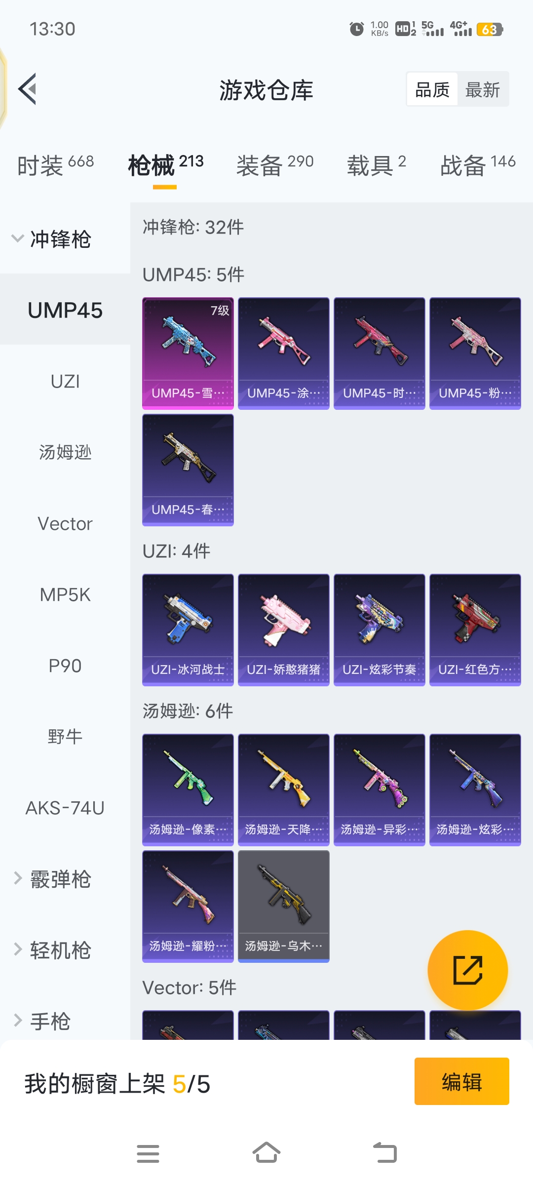 雪国幻梦等16套粉装,2车子,7级五爪,4级98k,7级ump45,7级DP28,