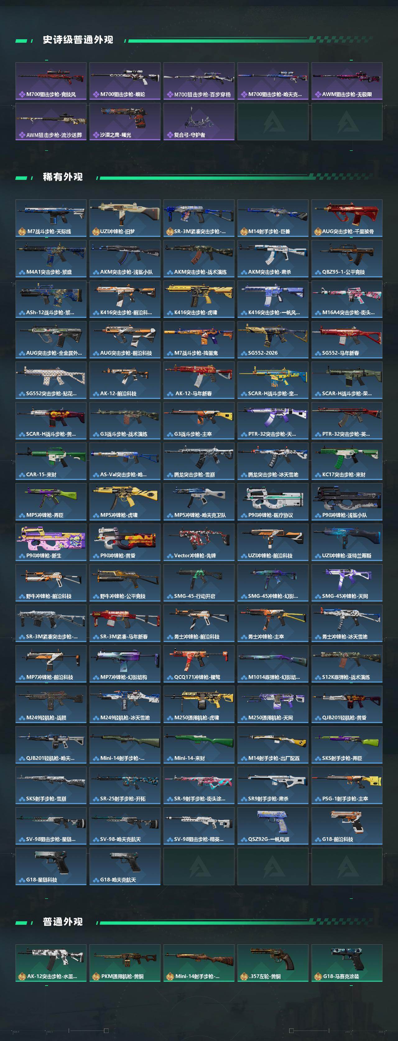 【传说外观】:M4A1突击步枪-阿米娅,ASh-12战斗步枪-鹅鸭杀,AUG突击步枪-悠然茶歇,SG552突击步枪-运