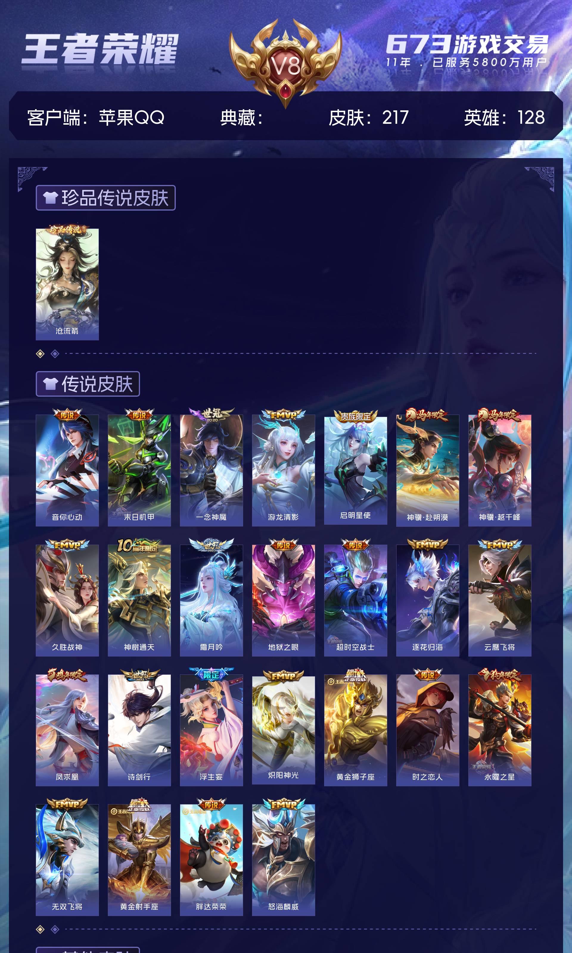 V8 皮肤217 英雄128 至尊星耀 珍品传说1 传说25