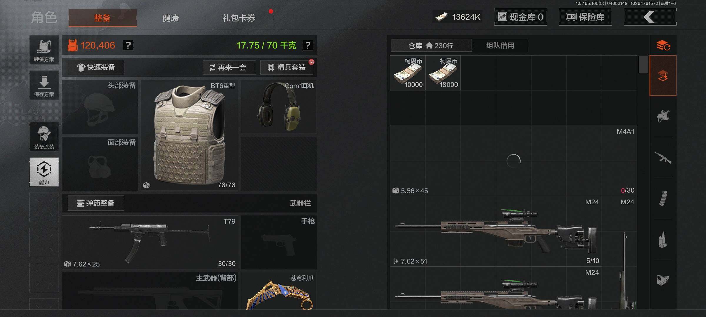 安卓QQ可二次,一把手感不错的刀皮,三把金枪,仓库价值30M,柯恩币13624