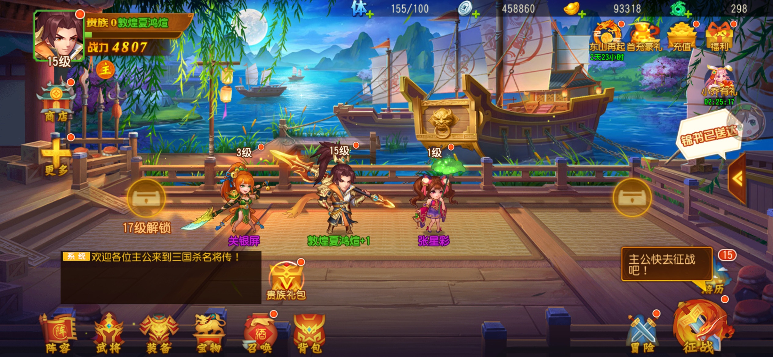 三人上阵 未绑定 未充值 未用礼包 没看错 可以自选1金武将哦 外带自选1红武将 9万元宝 详情请看截图