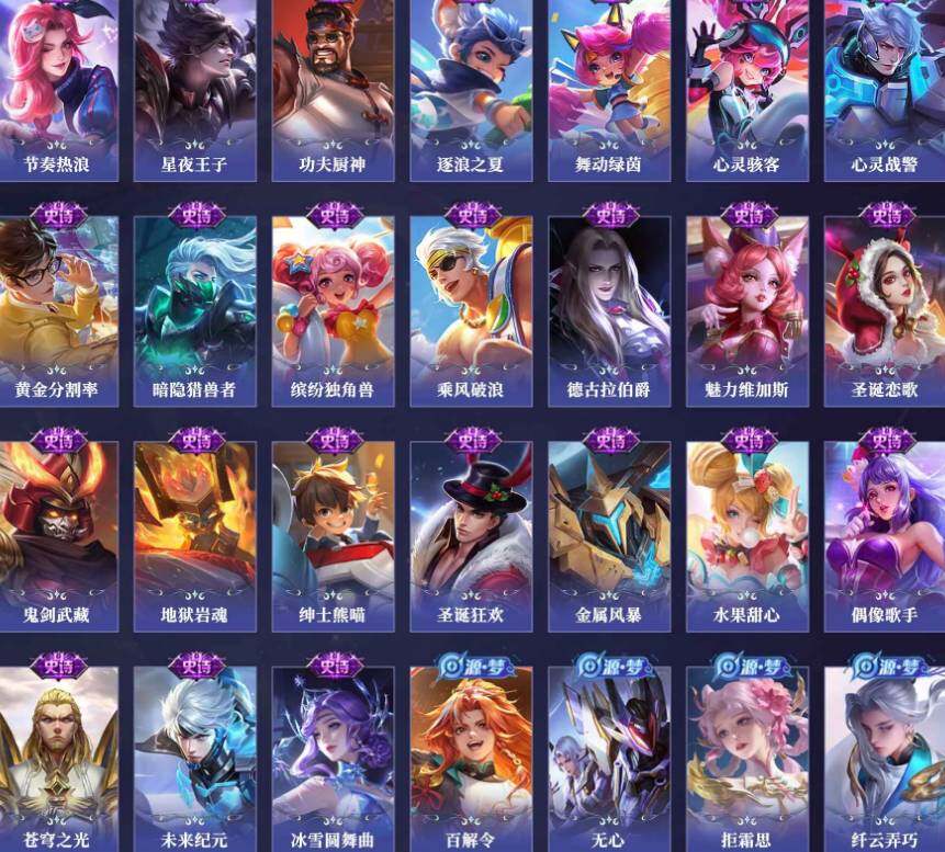 【传说皮肤】:云缨鹤归松栖,马可波罗妄想实况,孙悟空齐天大圣,曜云鹰飞将,达摩黄金狮子座,后羿黄金射手座,宫本武藏地狱之眼,孙悟空地狱火