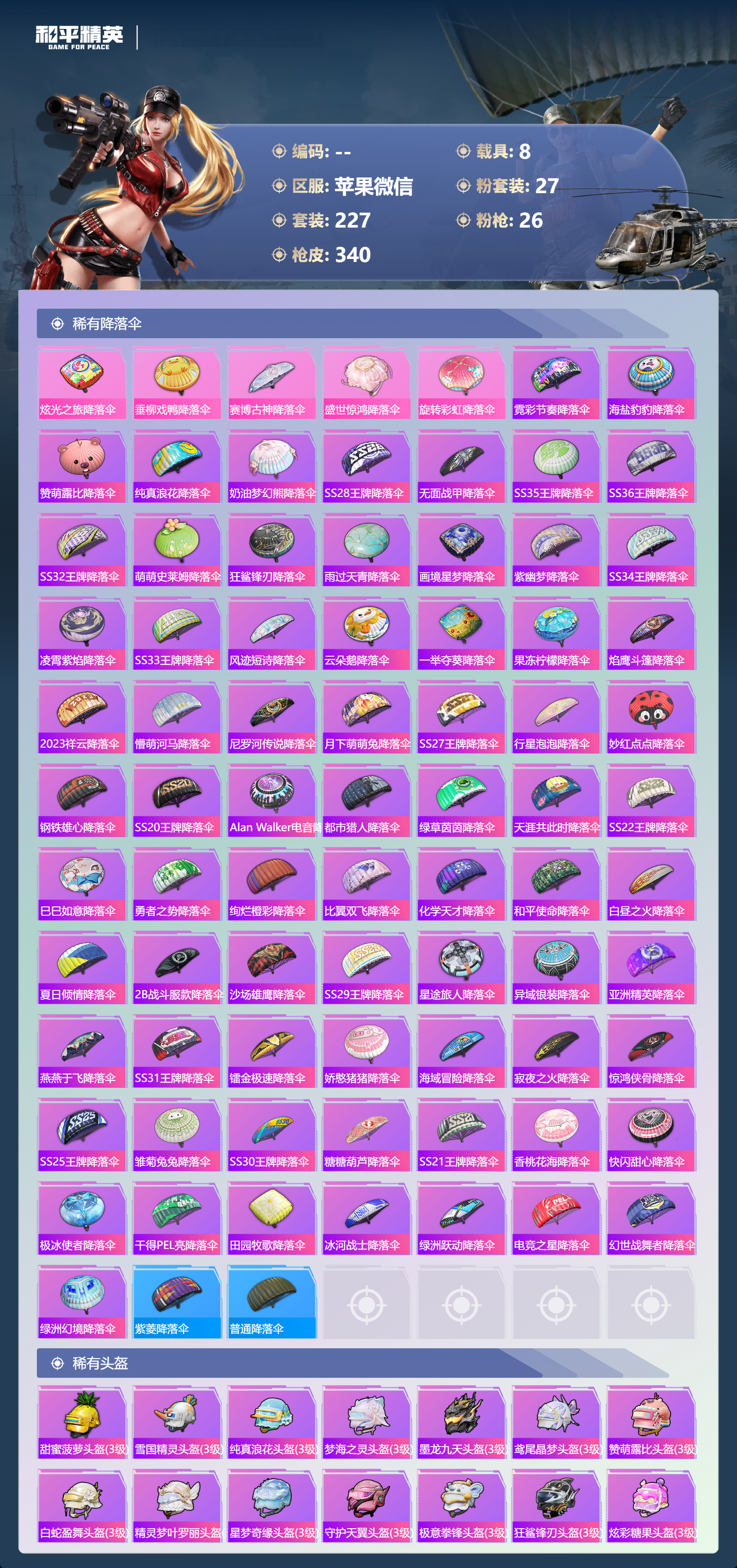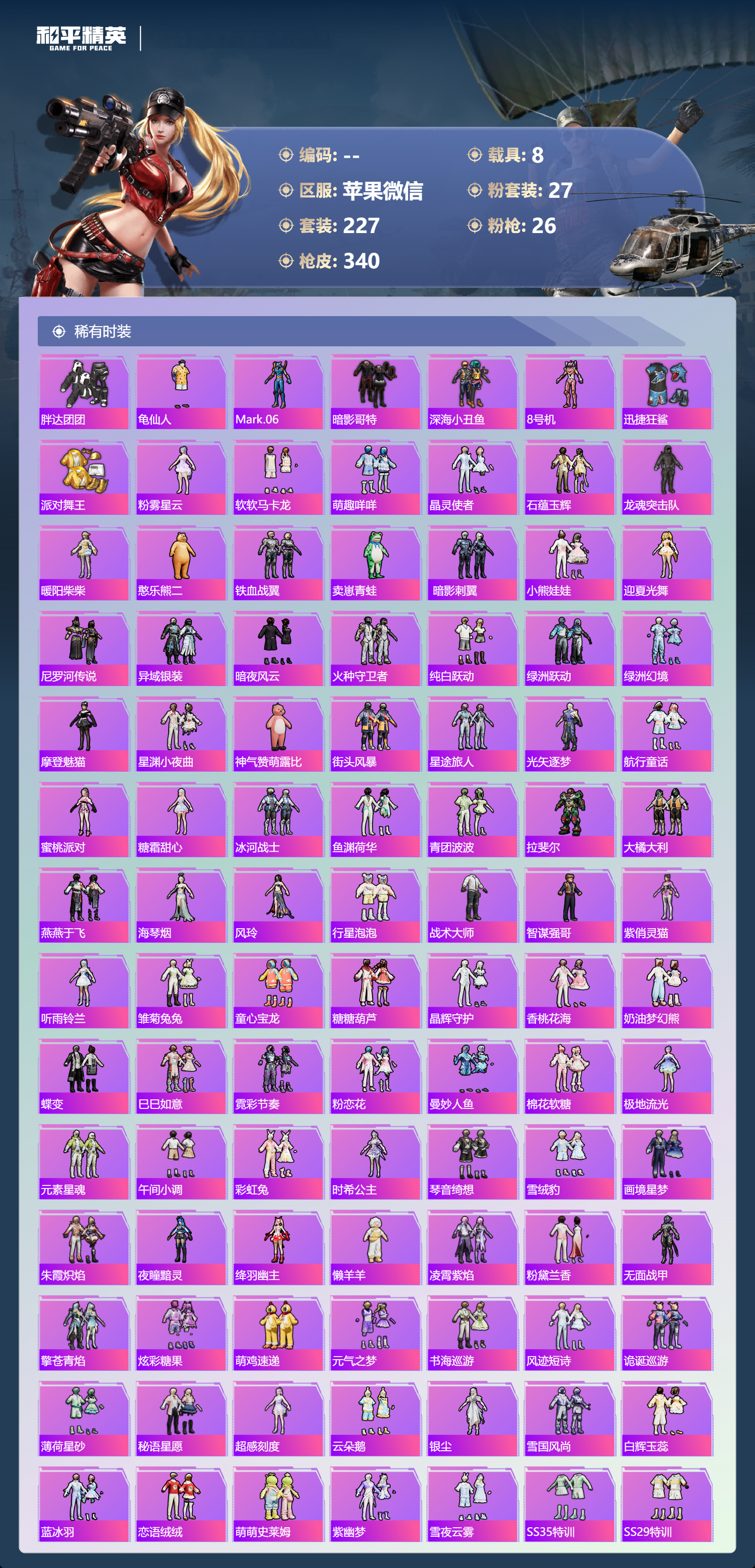 16王牌印记-有战神框-5红装-27粉装-26特效枪-