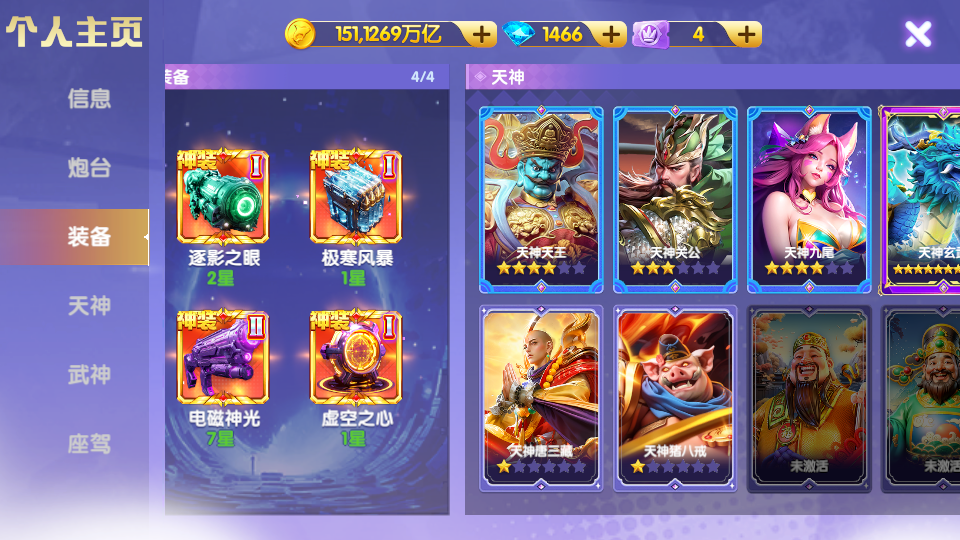 买断151京神装洪荒3级武神27星秒换绑编号18