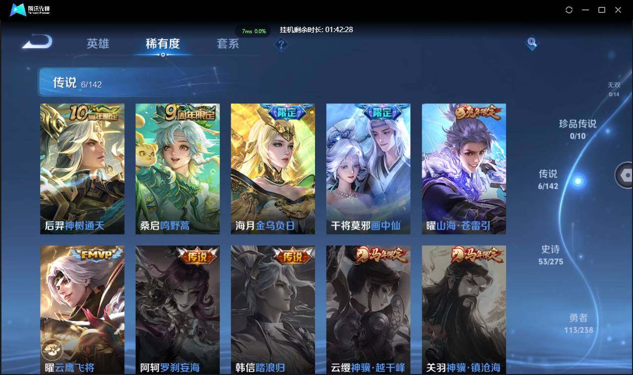 贵6-128英雄-219皮肤-1典藏-6传说-64限定-3按键-贵族积分17300