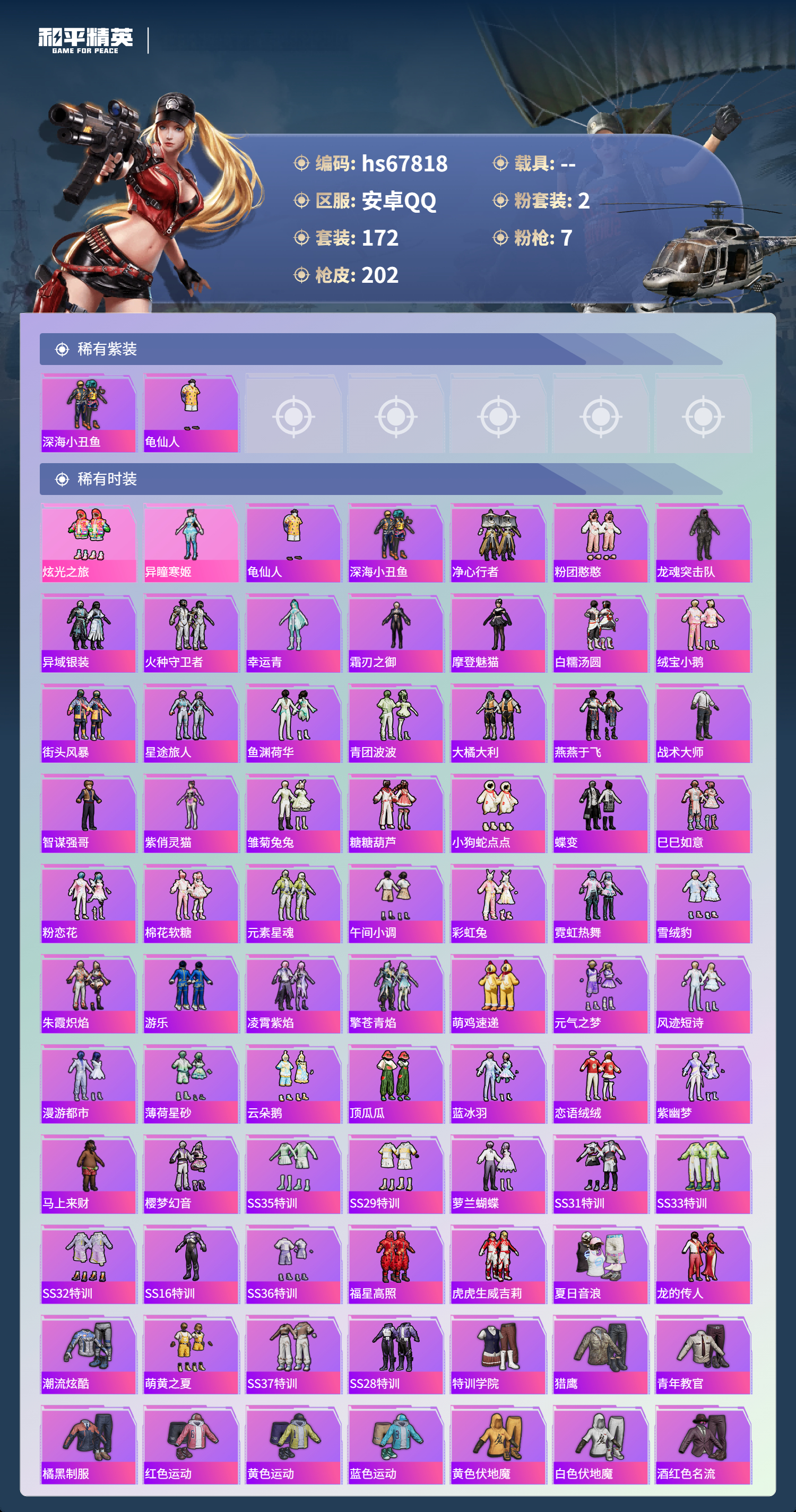 7王牌印记-2粉装-7特效枪-59781热力值-172套装-202枪皮