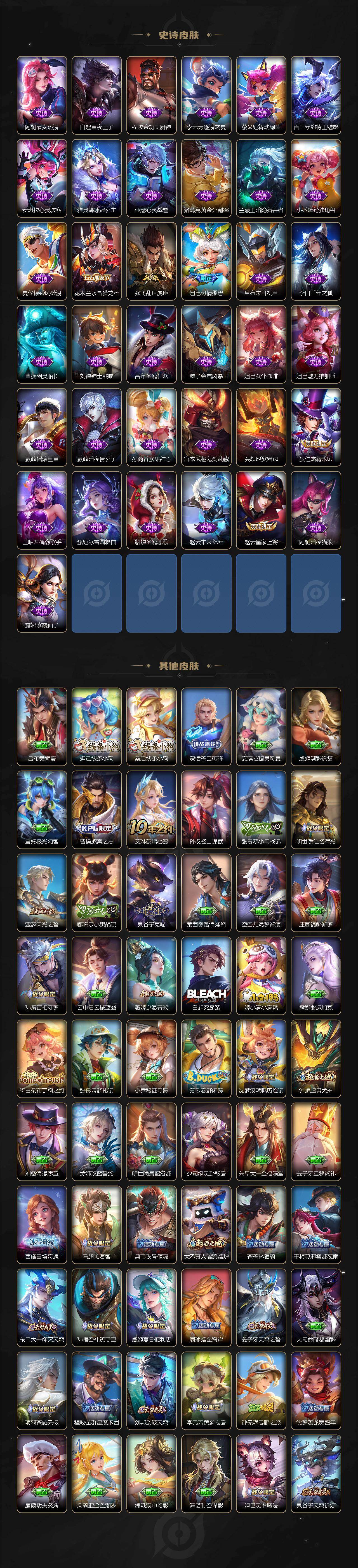 贵族9/皮肤300/典藏4/传说26/史诗89/英雄128/孙权全皮/敖隐全皮/
