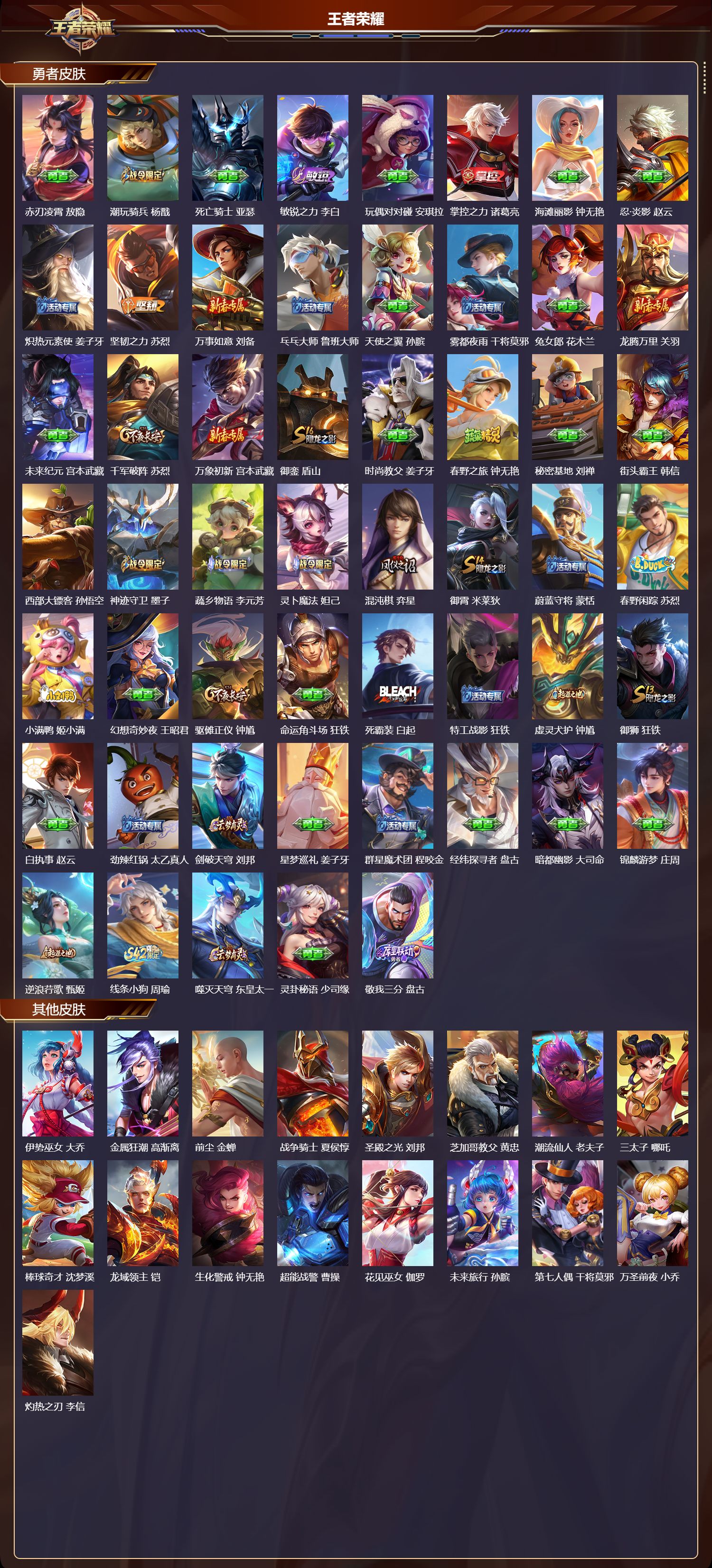 安卓QQ/荣耀王者/266皮肤/128英雄/2典藏/0珍品无双/1无双/2珍品传