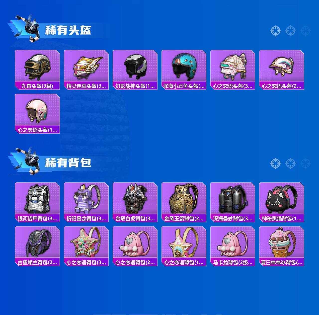 粉装7/粉枪5/载具4/珍稀飞行器72256/套装140/枪皮221/热力值70305/历史最高段位:王牌印记10次/Lv:70/七级M762-激战未来/五级Kar98K-巳巳如意/五级Mk14-福马献瑞/四级AA12-G-萌骑幻想/五级DP-28-豹影疾电/小丑鱼/军刀雅典娜/旭日初心兜帽大衣/套装-龟仙人/金曜白虎/金风玉露/烈焰拳霸/复仇流浪者/幻影/创世·救赎/角色-凤凰座 一辉/特斯