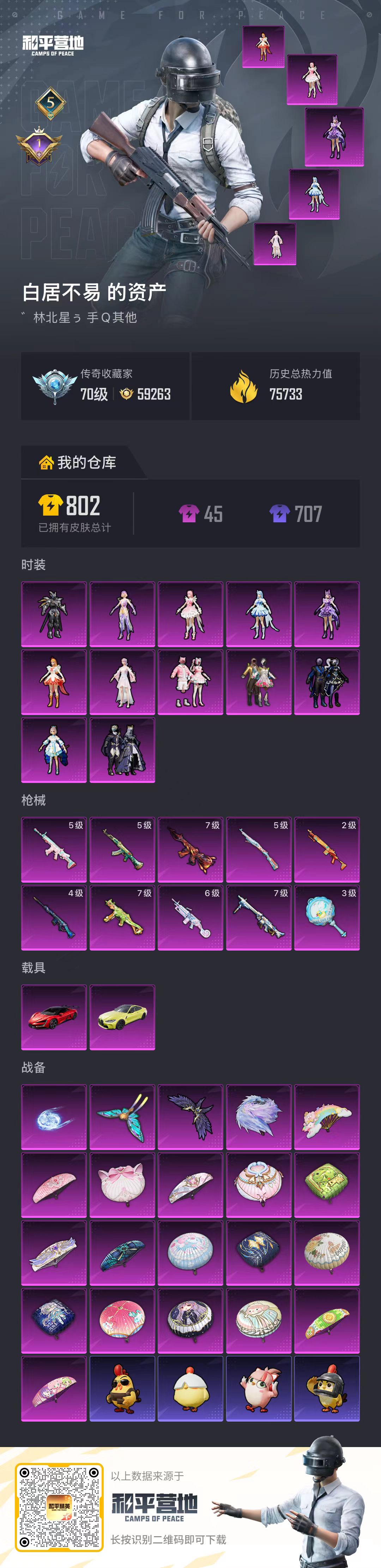 hs67962 安卓手Q-5王牌印记-12粉装-10特效枪-2载具-76643热力值-166套装-225枪皮-1卓越印记