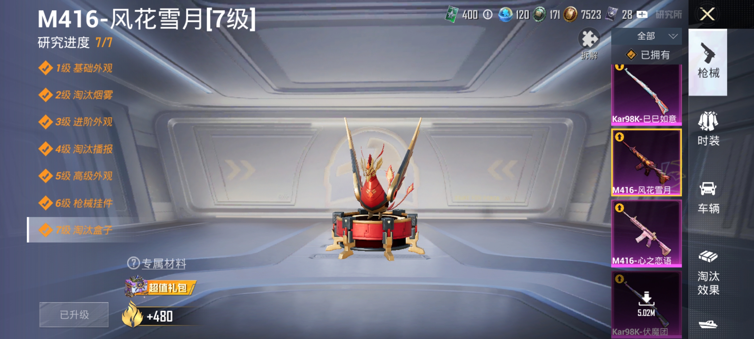 红眼罩满级M4风花雪月 M4心之恋语小熊背包9粉装7特效枪1载具