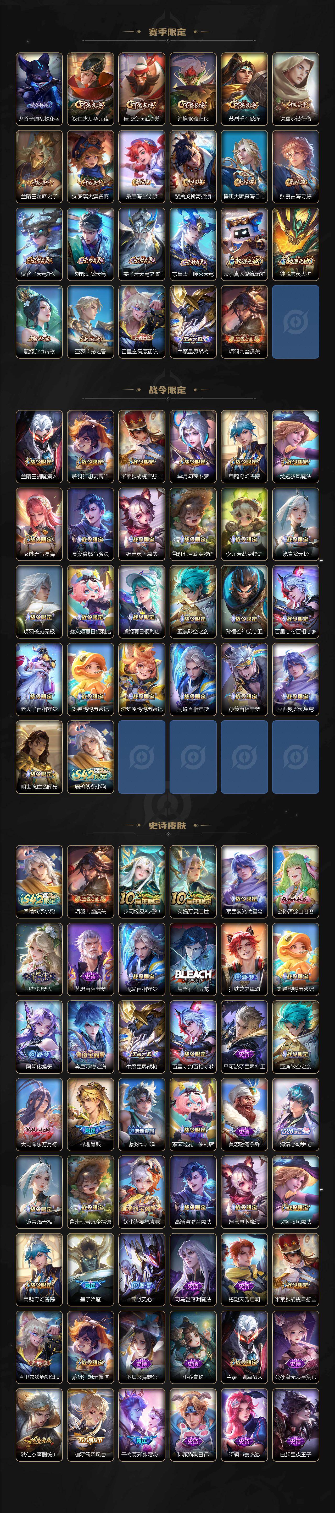 最强王者段位-127英雄-229皮肤-1典藏皮肤-1无双-1珍品传说-11传说-76史诗