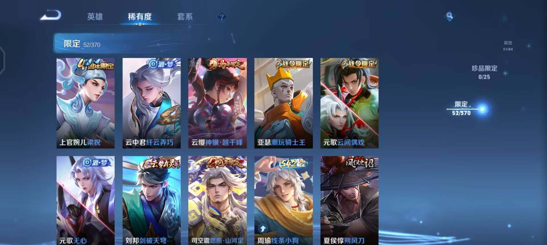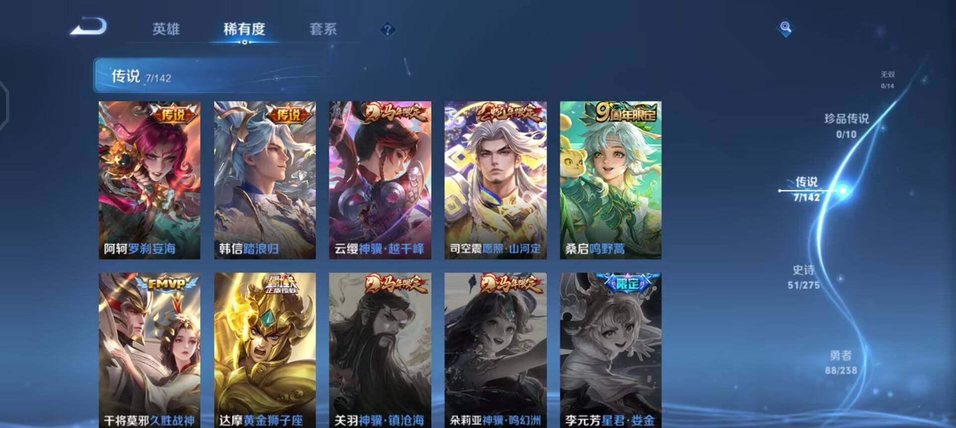 V6-最强王者段位-127英雄-198皮肤-1典藏皮肤-7传说-50史诗