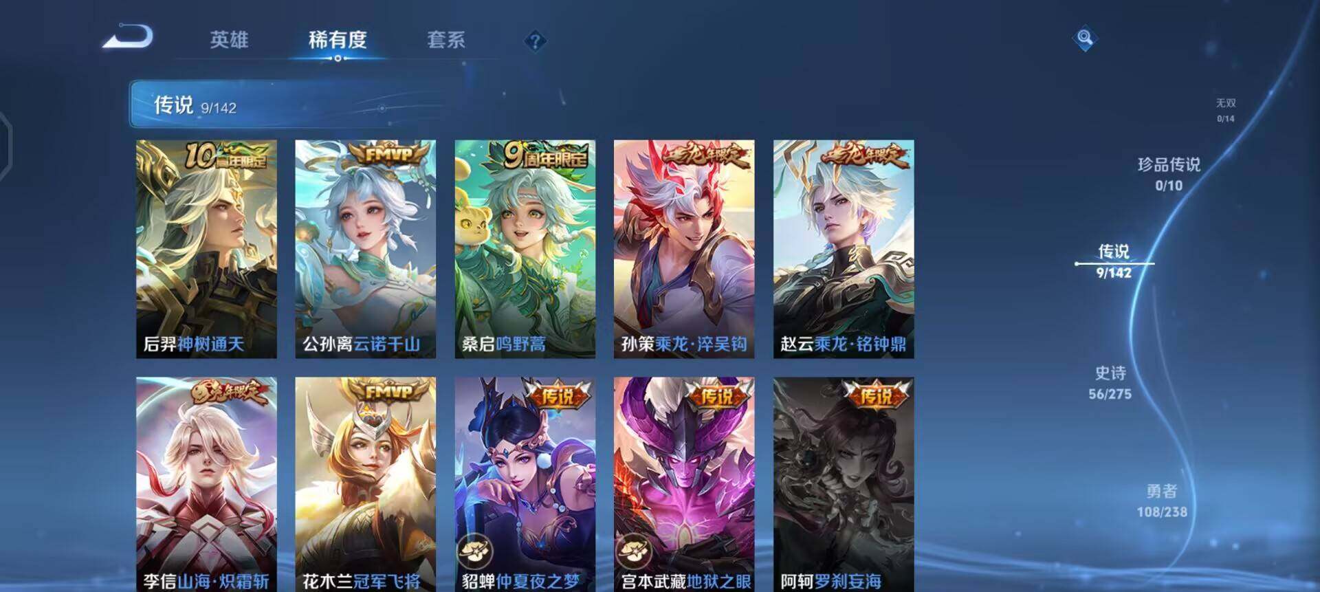 V6-永恒钻石I段位-127英雄-221皮肤-1典藏皮肤-9传说-55史诗